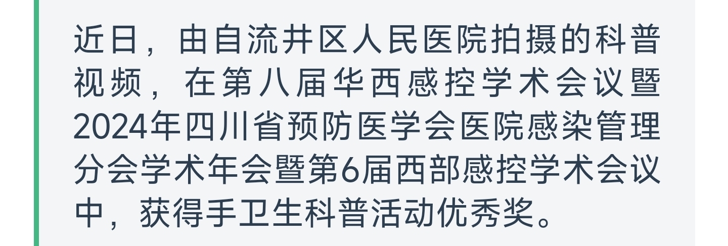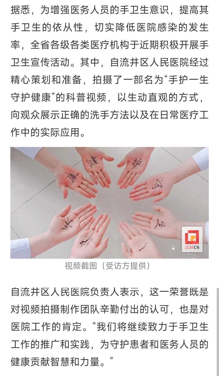 [盐都杂谈] 自流井区人民医院“手卫生”科普视频获省级优秀奖