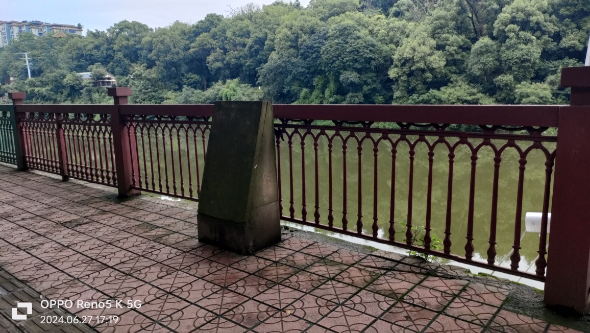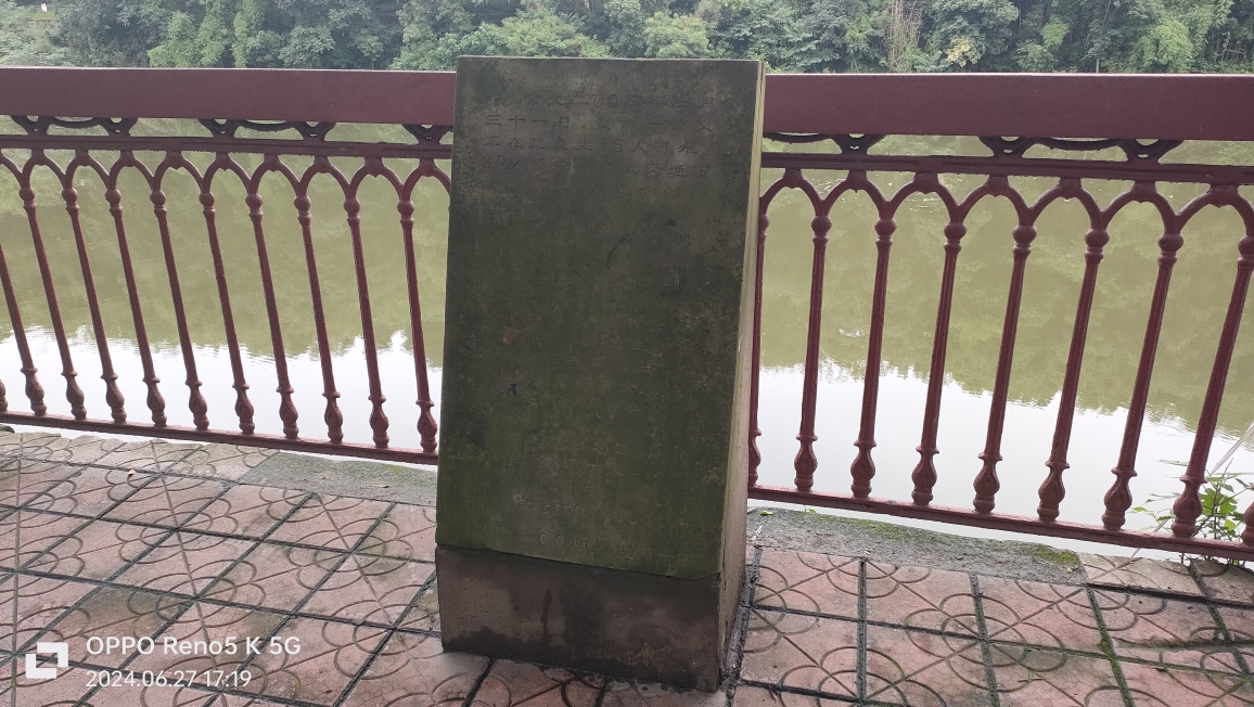 二十年前的三月三十一日,位于解放桥向王爷庙方向步行百余米处,曾经发生了一起震惊全国的特大交通事故案,据说:自贡公交集团的一辆满载乘客的车,从檀木林大街向王爷庙方向行驶,当车行至自贡市第四人民医院门诊大门处,驾驶员发现方向盘不能转动方向,刹车不能制动,像一脱僵的野马,横冲直闯,车内一片混乱,由于,此路段属下坡,故尔,越开越快,直接撞倒沿河护拦,公交车吊翻至河里,致使死亡仅二十人左右,为了警示交通事故,给人们的教训沉痛,特立此碑,被撞坏的护栏是红色的,由于,日晒雨淋,石碑表面生了清苔,原来涂的红色字,全部退色,己被青苔遮挡。