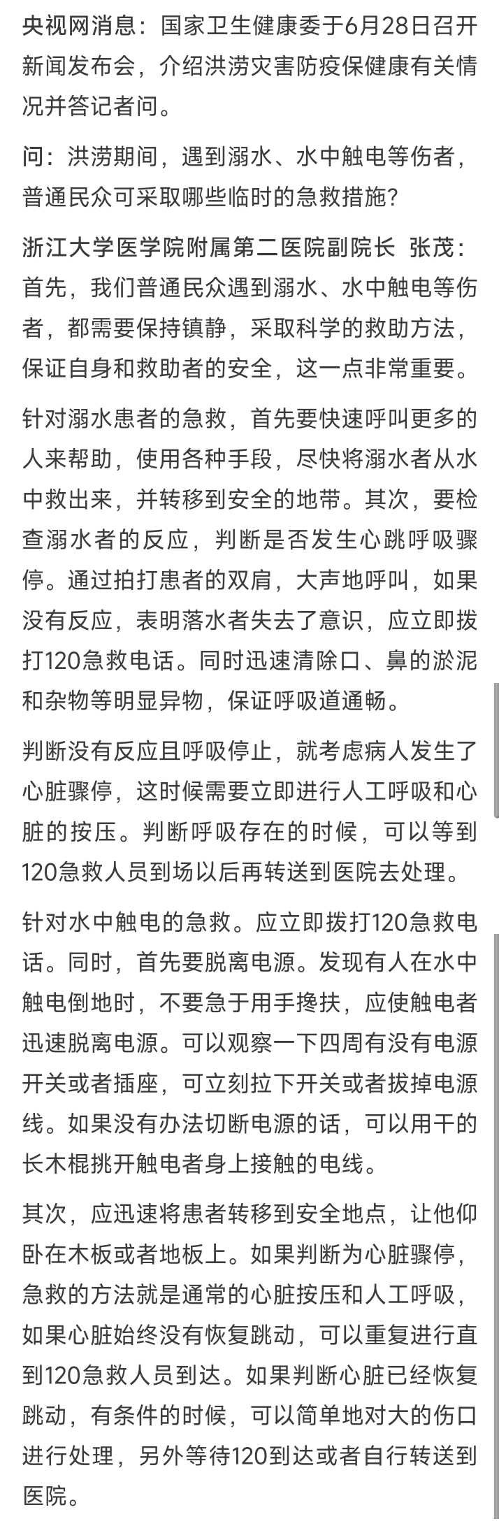 [盐都杂谈] 洪涝期间,普通民众遇到溺水、水中触电的人怎么办?