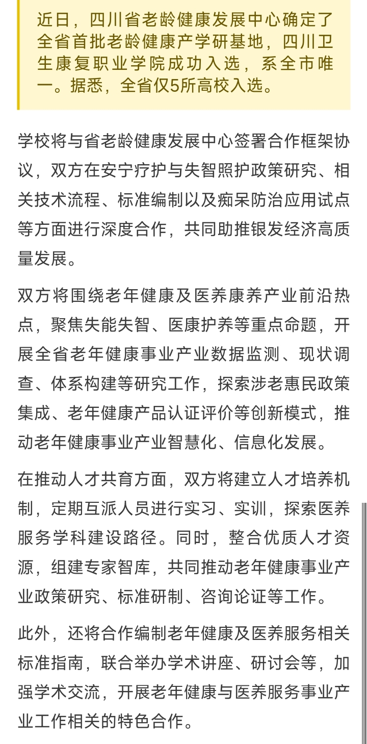全市唯一!四川卫康院入选全省首批老龄健康产学研基地