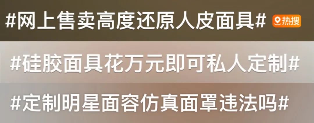 记者在多个电商平台以“人皮面具”为关键词搜索发现,该词语已被系统屏蔽。但更换关键词比如“硅胶面具”,就能看到不少商家。所售产品价格在几元至几万元不等,不但种类繁多,而且设计各异。顾客只需提供照片或通过3D扫描技术获取人脸图像,商家就能根据这些信息制作出一张人脸面具。一些商家还推出明星面容仿真面具,声称可以高度还原明星的面部特征,核心卖点即“超逼真”“仿真定制”,根据面具复杂度和精细度而定,价格在3000元至25000元,从下单到制作完成大约需要1个月时间。记者咨询了6家售卖此类面具的商家是否需要提供个人信息,对方一致回复“不需要”,且都没有询问购买目的和用途。