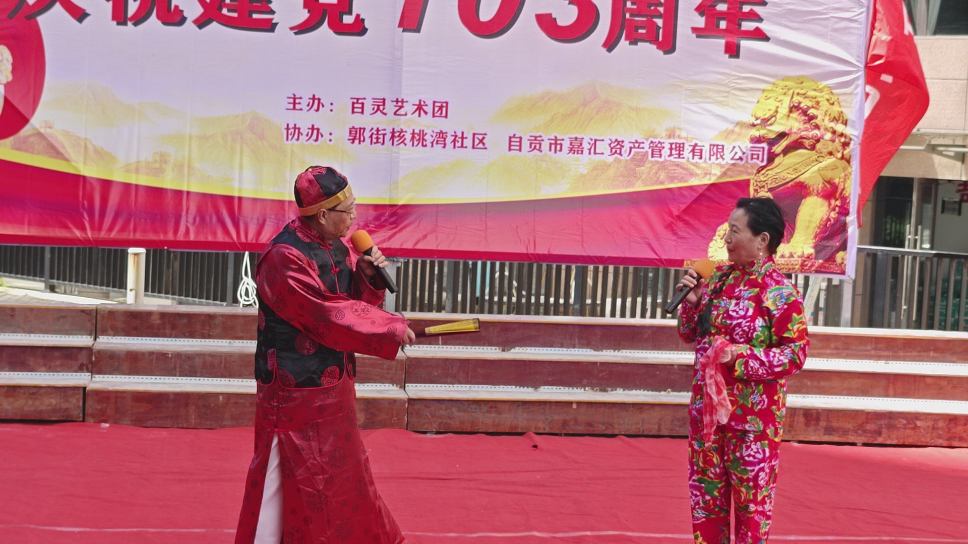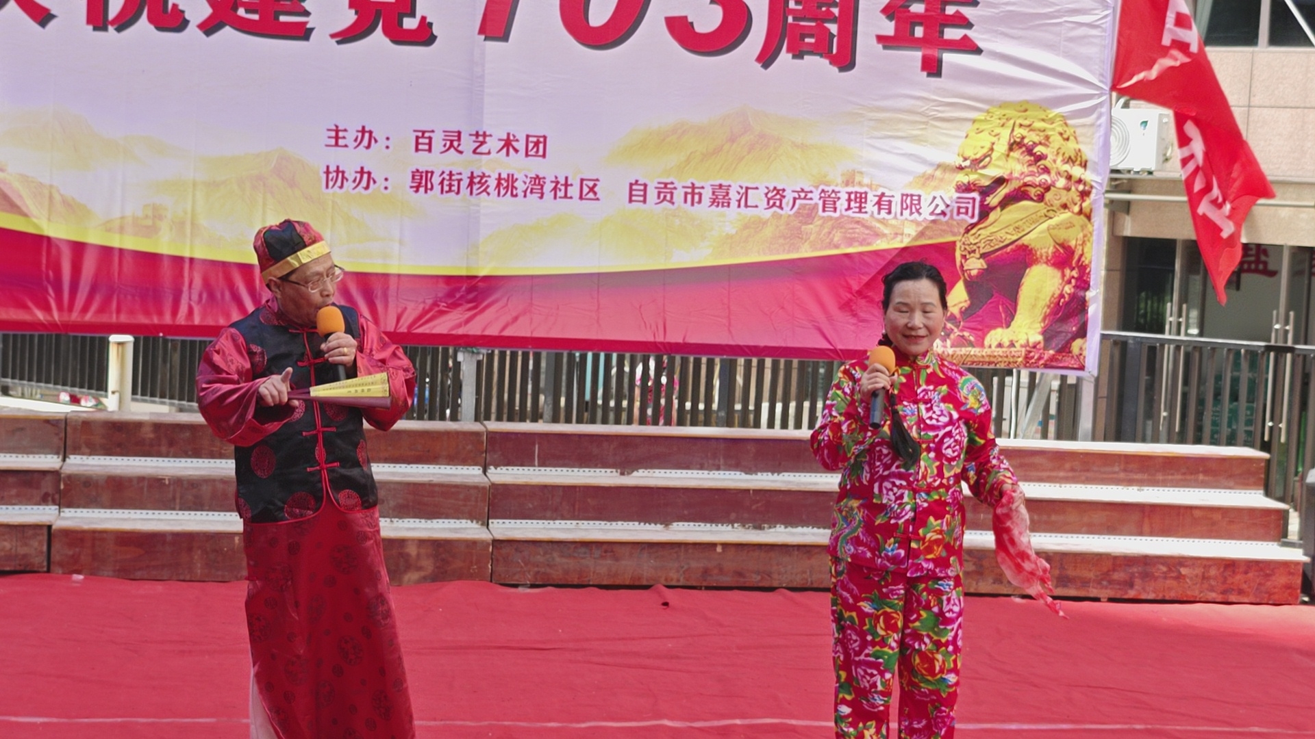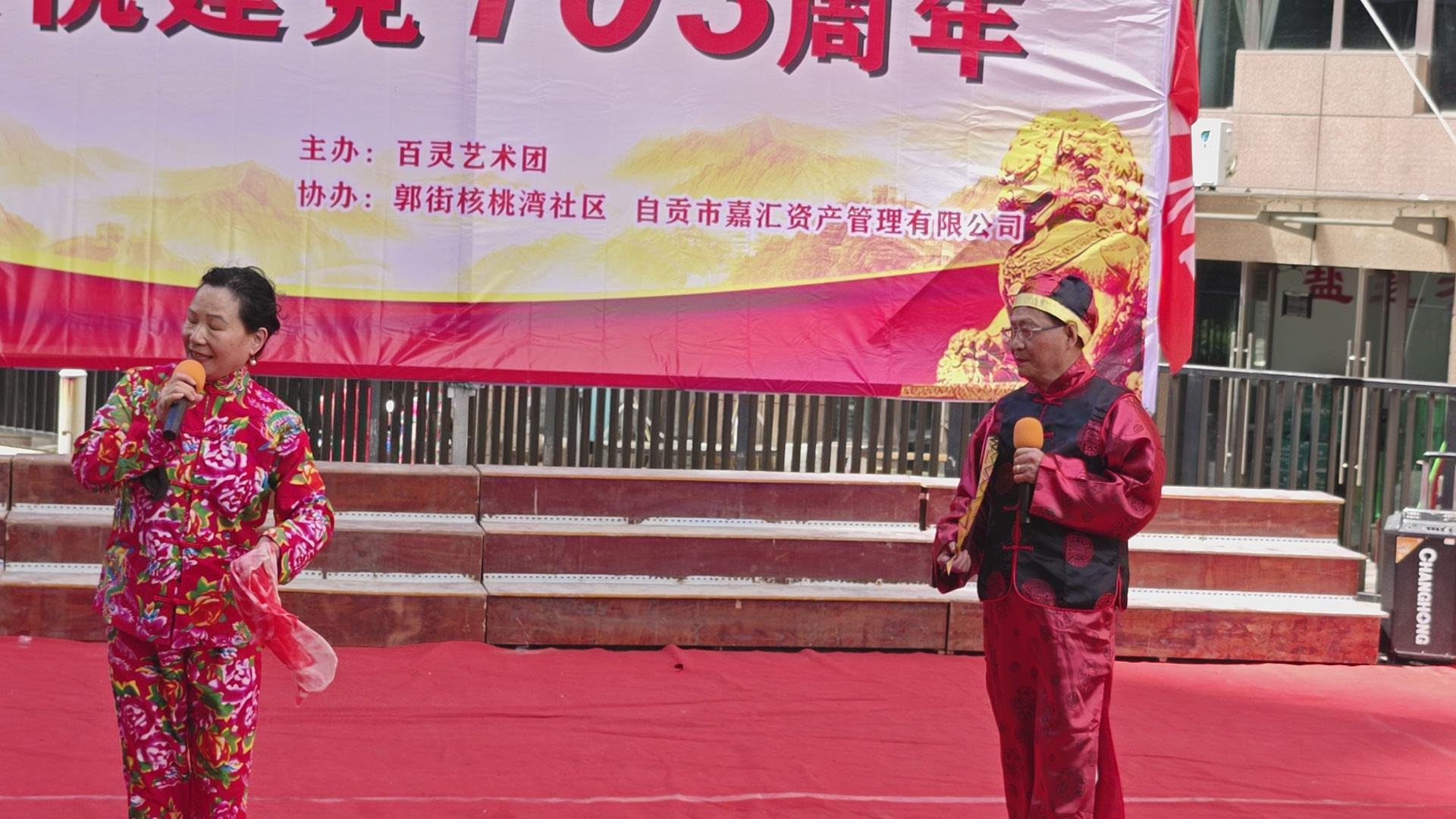 七.一庆祝“建党103周年文艺演出活动”,在郭街核桃湾社区和顺家园小区隆重举行,百灵艺术团的“西歌  红玉(网名)”表演的黄梅调“戏  凤”,受到热烈欢迎,自媒体.自由撰稿人郭老者现埸摄像编辑,并在各大网络平台发佈,欢迎大家关注。