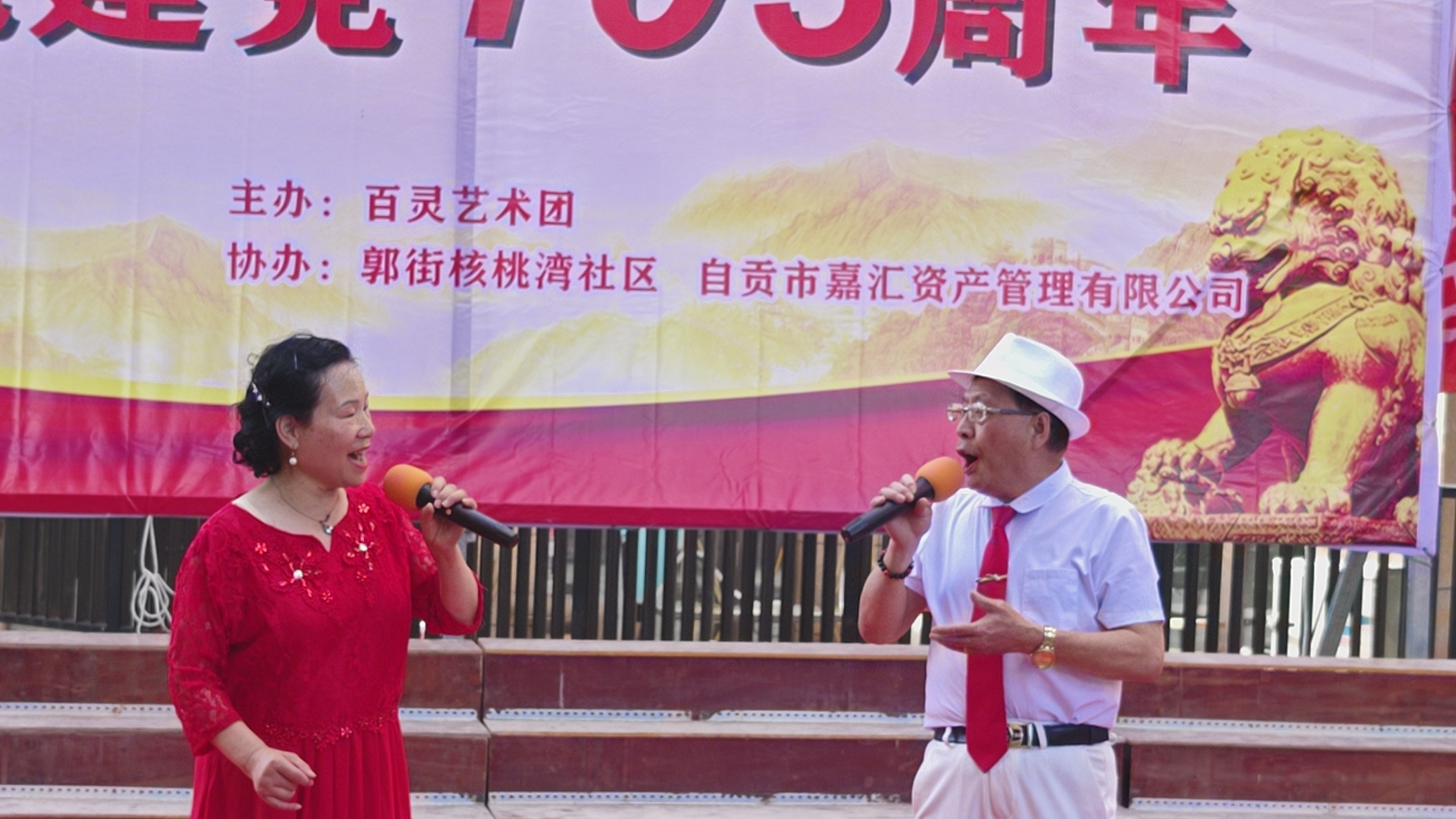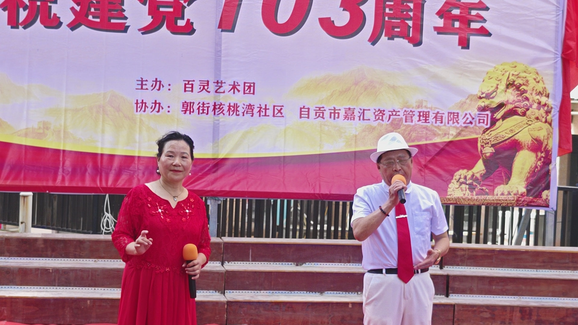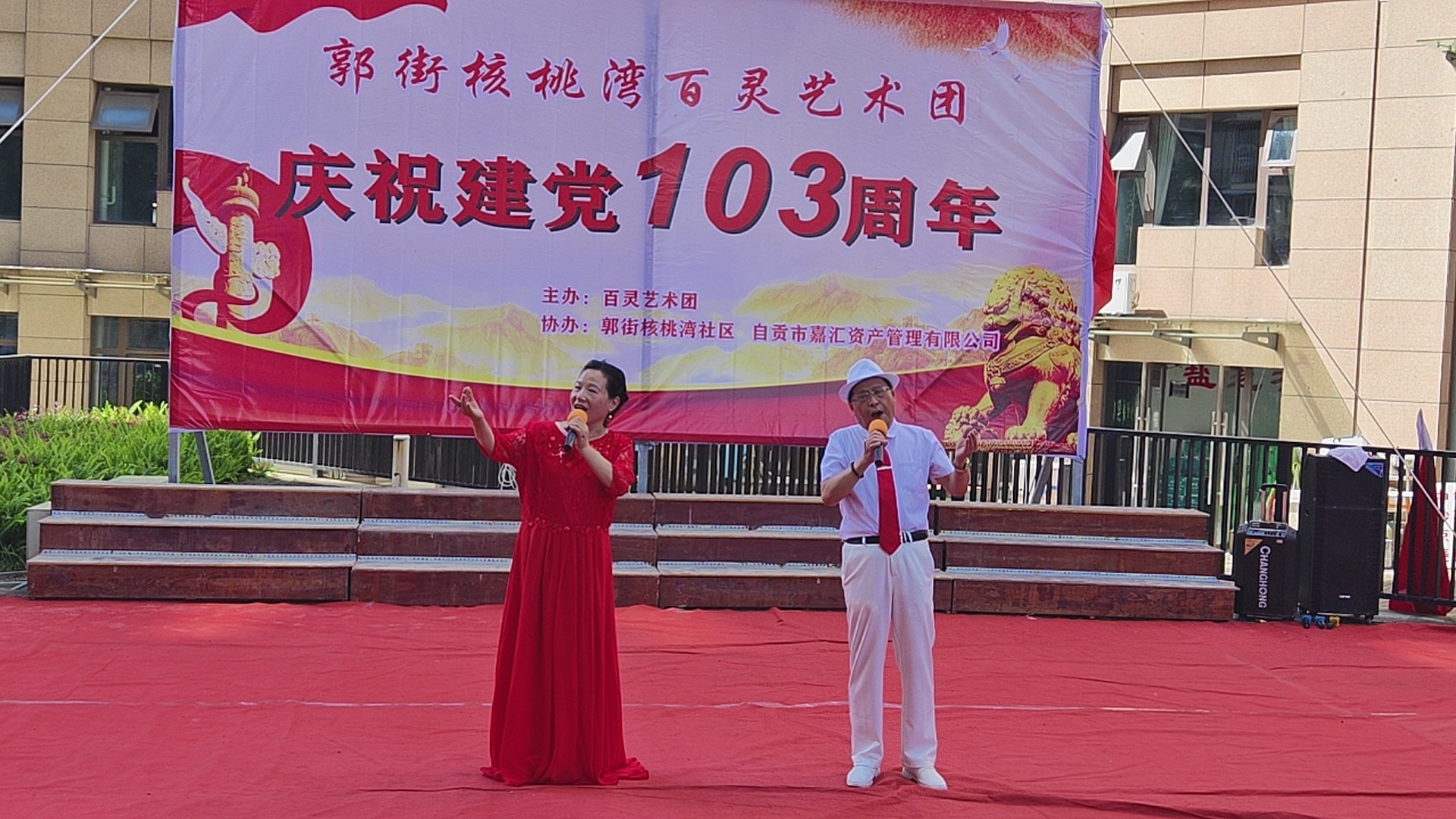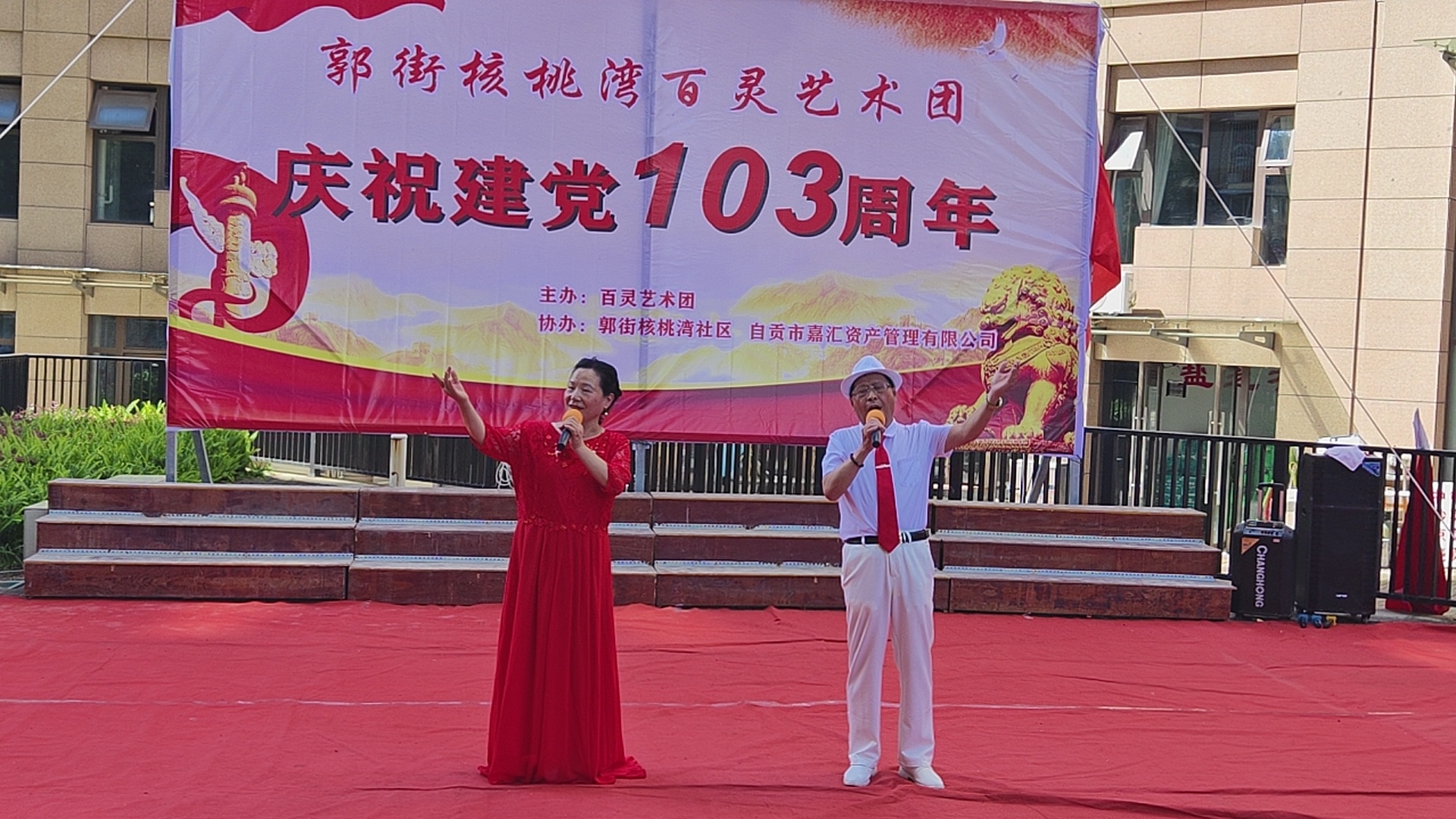 七.一建党103周年庆祝活动,在郭街核桃塆社区和顺家园小区隆重举行,百灵艺术团主办,并组织了精彩的文艺节目演出,西歌 红玉表演的男女声对唱《故乡自贡》歌声悠扬动听,获得观众好评,自媒体.自由撰稿人郭老者现埸摄像编辑,并在各大网络平台发佈,欢迎大家关注。