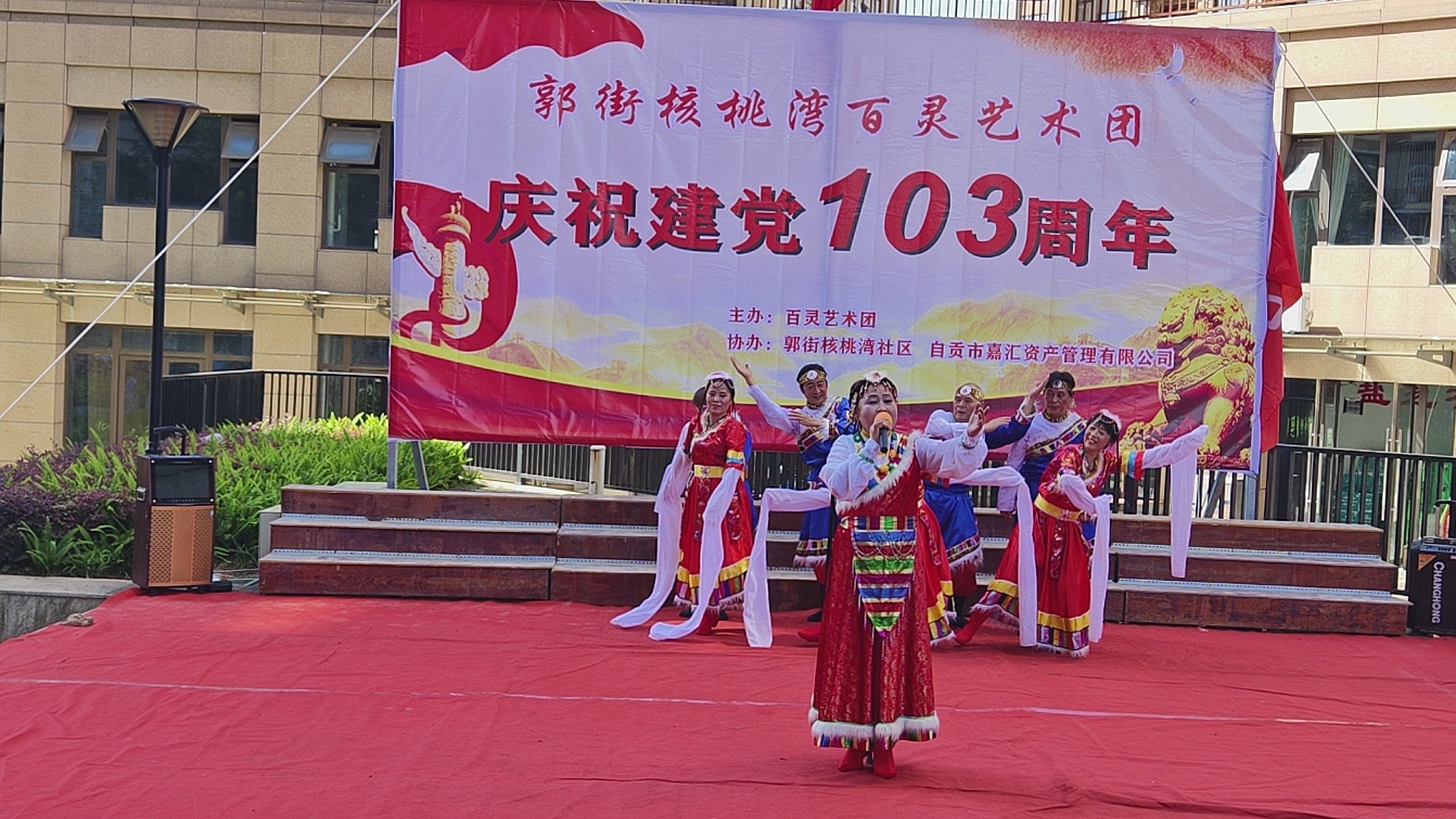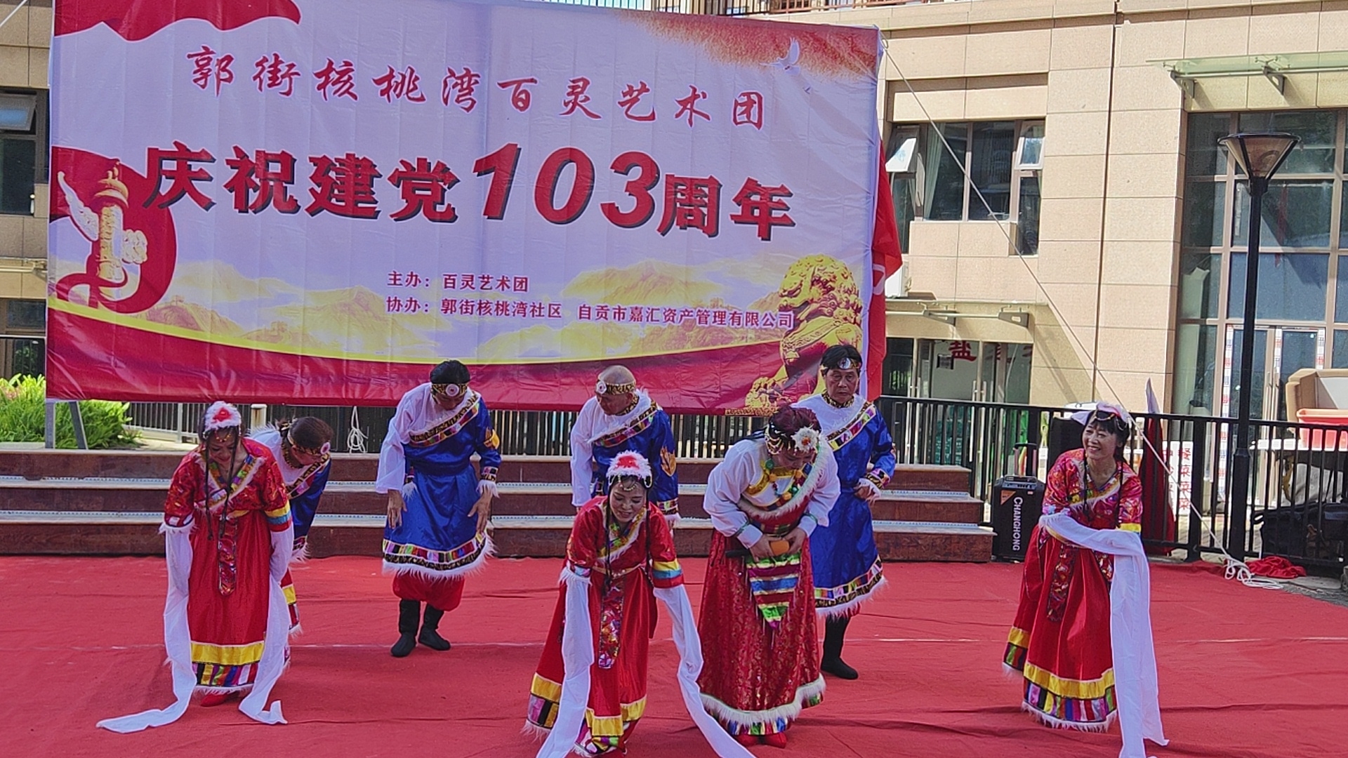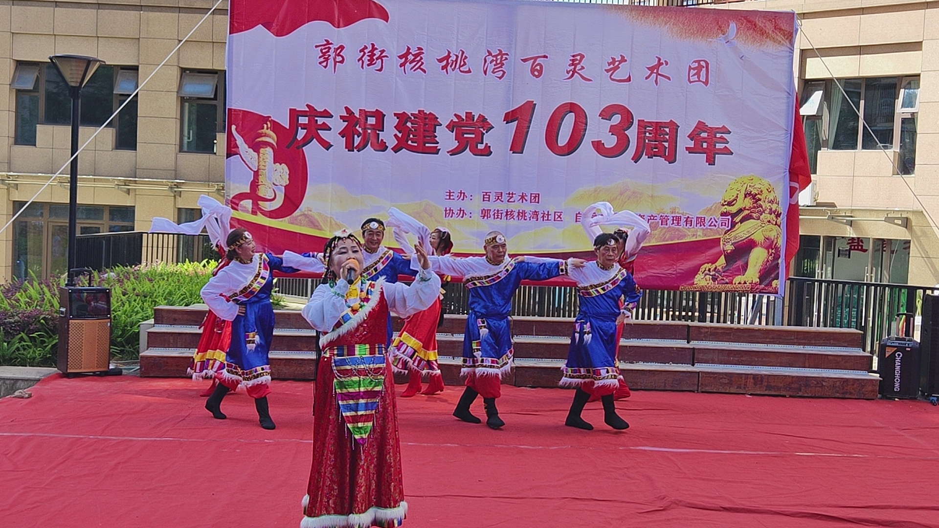 七.一建党103周年庆祝活动,在郭街核桃塆社区和顺家园小区隆重举行,百灵艺术团主办这場庆典活动,并组织了精彩的文艺节目演出,刘先群 曾小芳等人演出的歌伴舞《哈达情》题材新颖,舞姿优美,歌声悦耳,动作整齐,受到观众好评,自媒体.自由撰稿人郭老者现埸摄像编辑,并在各大网络平台发佈,欢迎大家关注。
