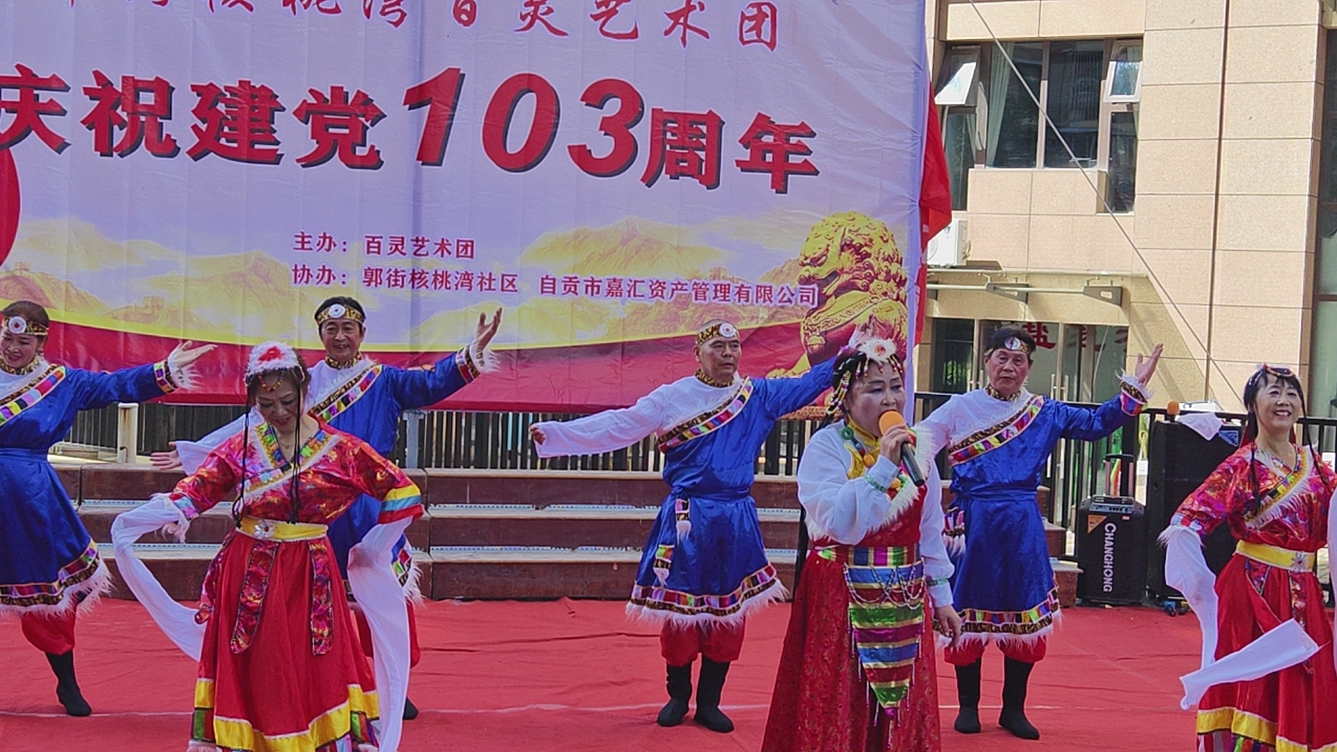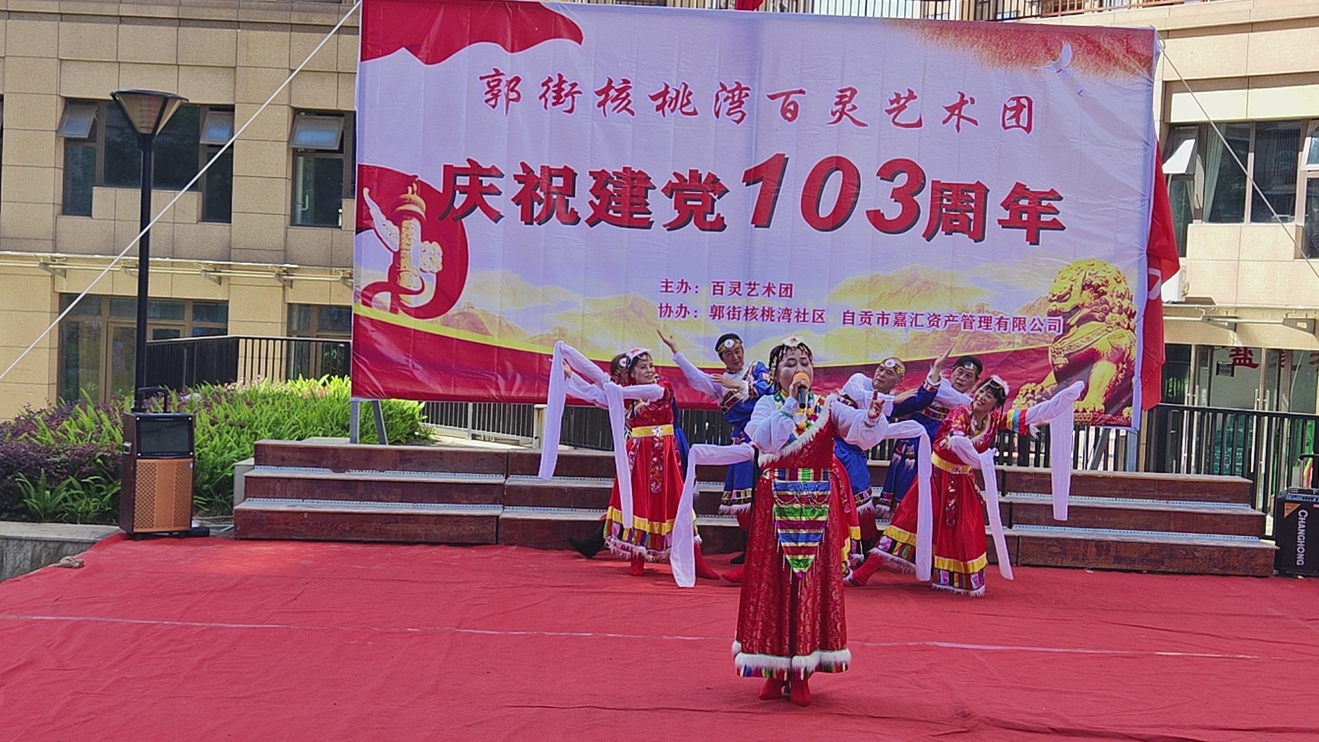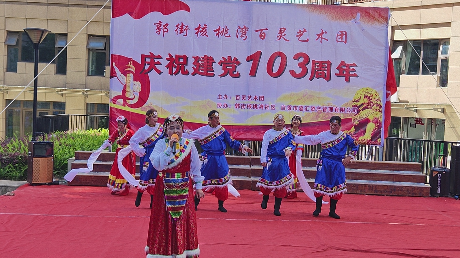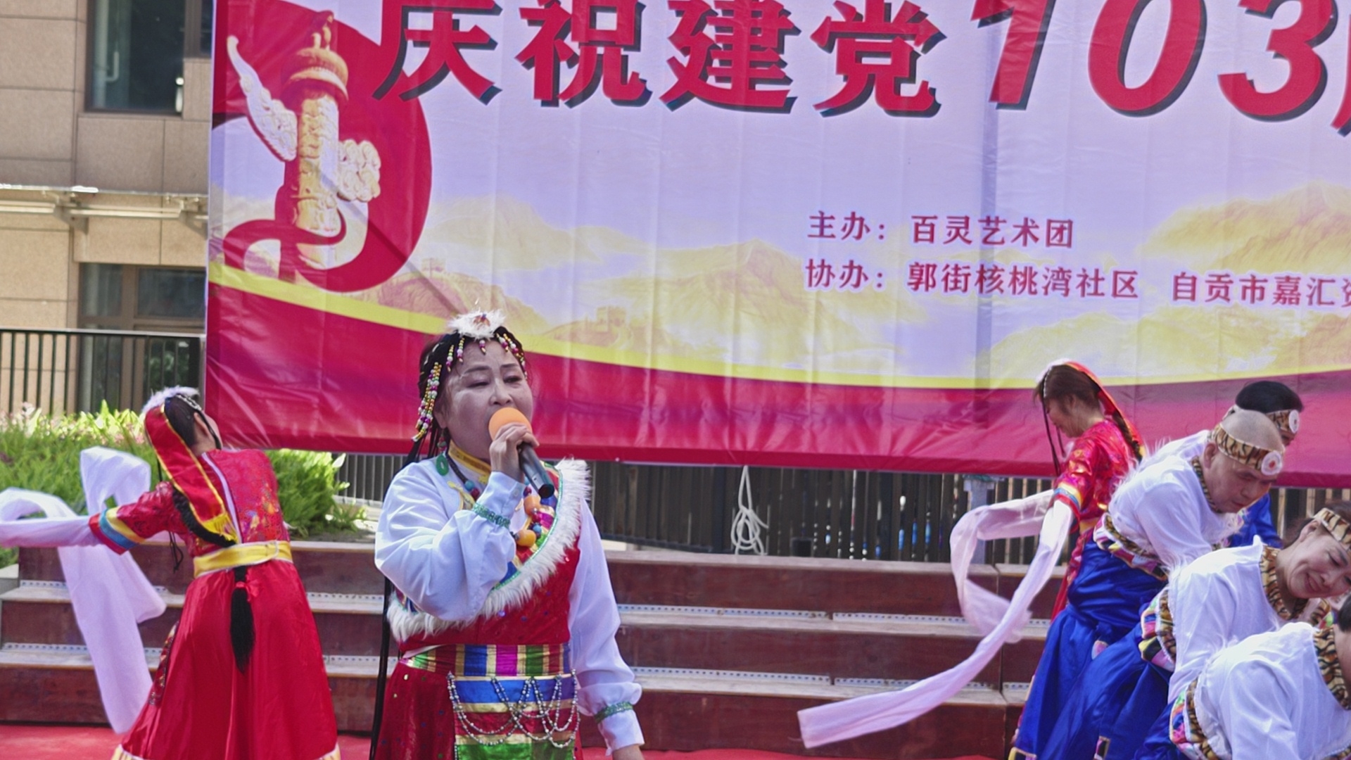 七.一建党103周年庆祝活动,在郭街核桃塆社区和顺家园小区隆重举行,百灵艺术团主办这場庆典活动,并组织了精彩的文艺节目演出,刘先群 曾小芳等人演出的歌伴舞《哈达情》题材新颖,舞姿优美,歌声悦耳,动作整齐,受到观众好评,自媒体.自由撰稿人郭老者现埸摄像编辑,并在各大网络平台发佈,欢迎大家关注。
