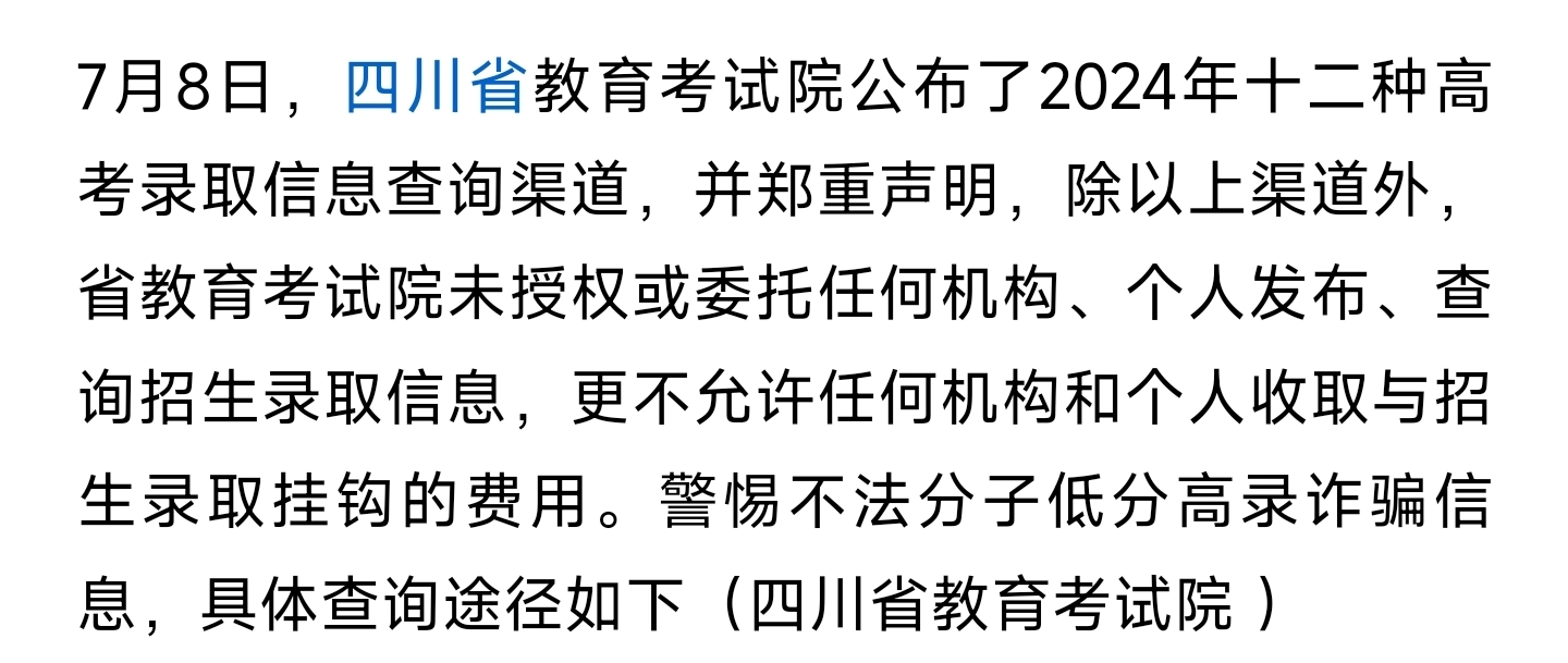 [盐都杂谈] @自贡高考学生 四川公布2024年12种高考录取查询渠道