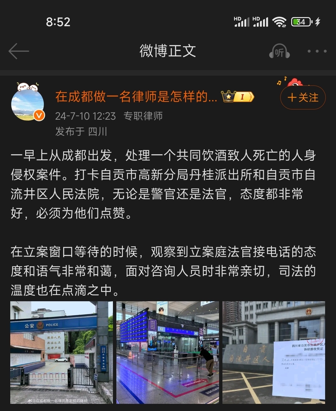 [盐都杂谈] 成都律师通报表彰自贡丹桂派出所和自流井区人民法院。