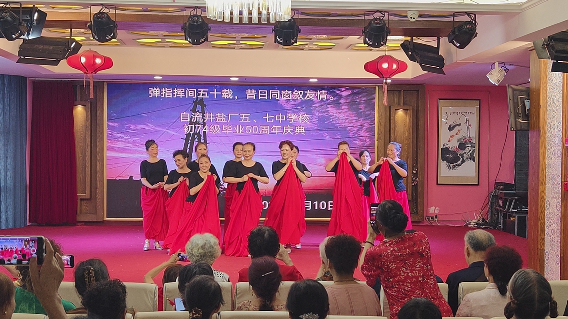 自流井盐厂五.七中学,初74级毕业生,50周年庆典活动在泰丰大厦蜀南晏酒店隆重举行,他们还准备了精彩的文艺节目,四班同学朱选平 林翠华等人演出舞蹈“梦回拉卜楞”,把雪域髙原藏族同胞的美好生活,完美的表现出来。自媒体.自由撰稿人郭老者现埸摄像编辑,并在各大网络平台发佈,欢迎大家关注。
