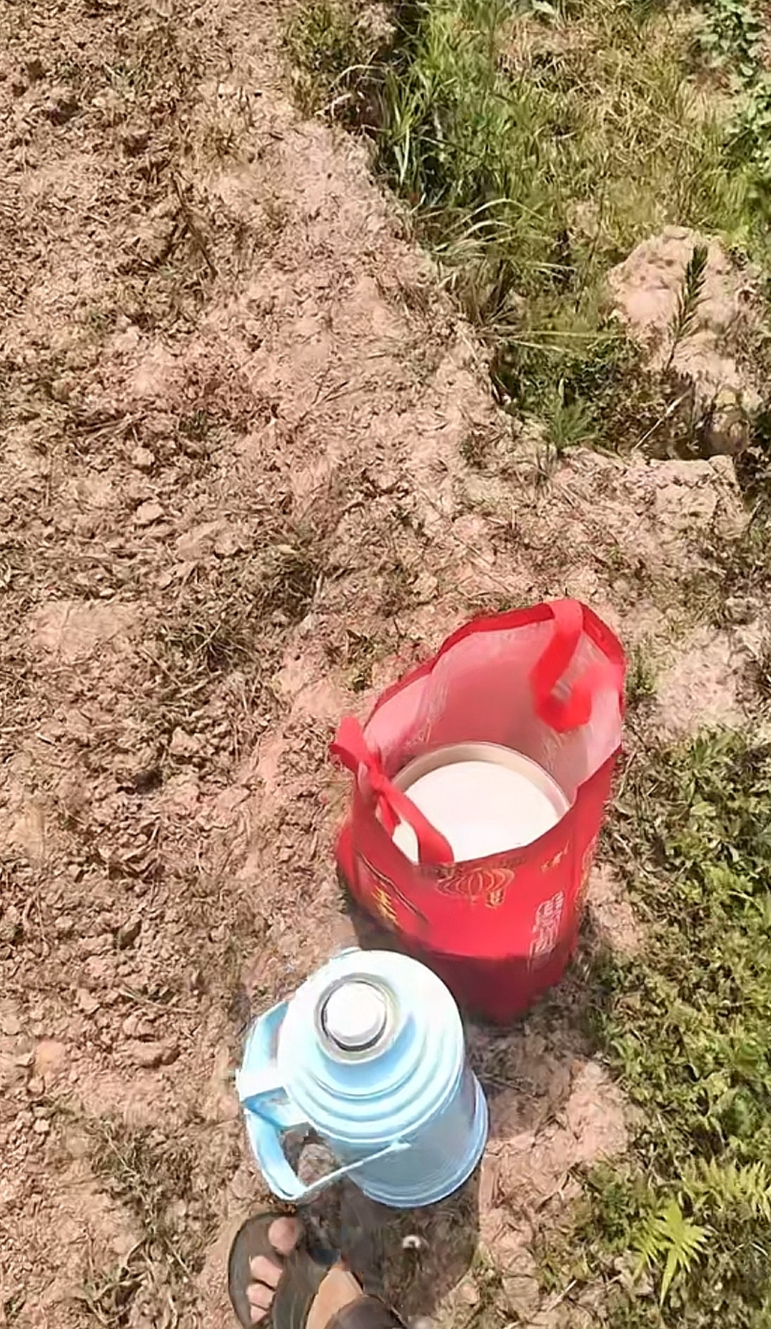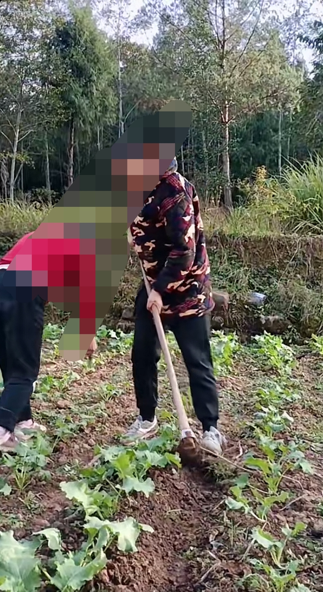 顶着大太阳,挖田,由于缺乏劳动,手上打了很多的水泡