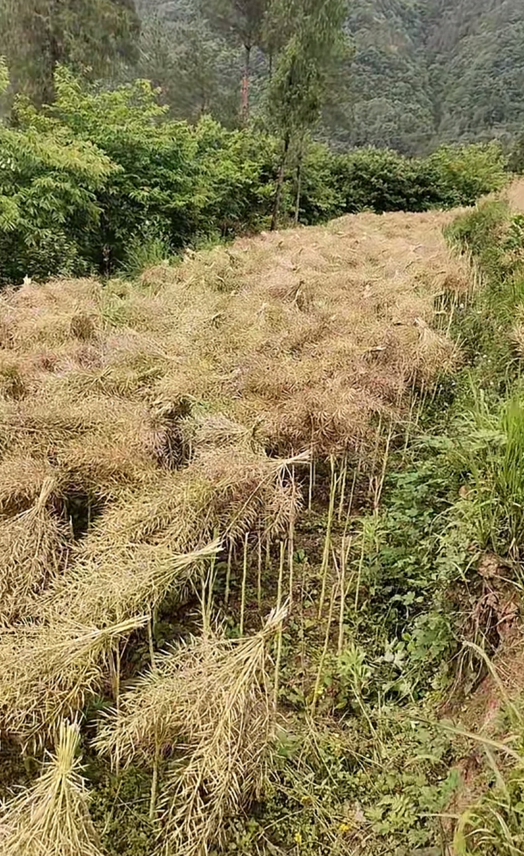 收割下来以后,就放在田里面,让太阳晒,期间,就担心下雨,一直下雨的话,就很麻烦啦,好在天公作美!