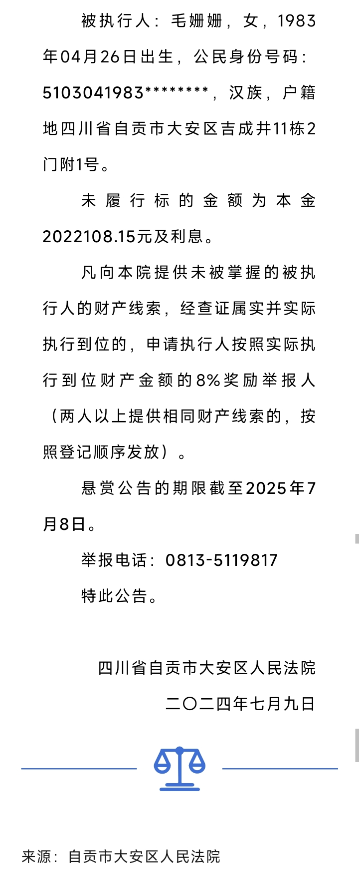[盐都杂谈] 自贡一80后女子被悬赏