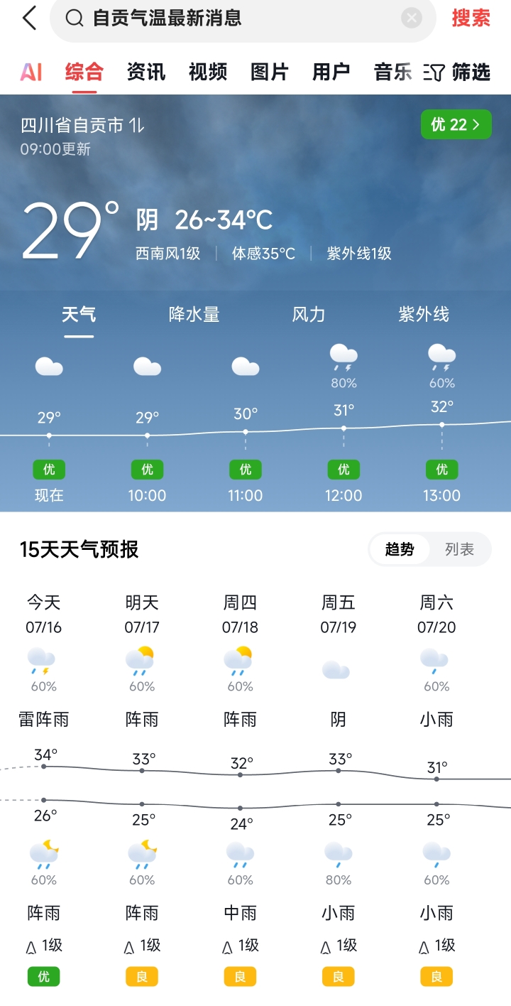 5 四川自贡市26~34℃