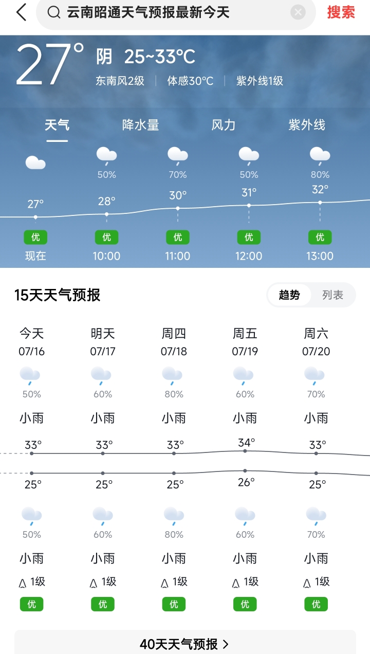 1 云南昭通市25~33℃