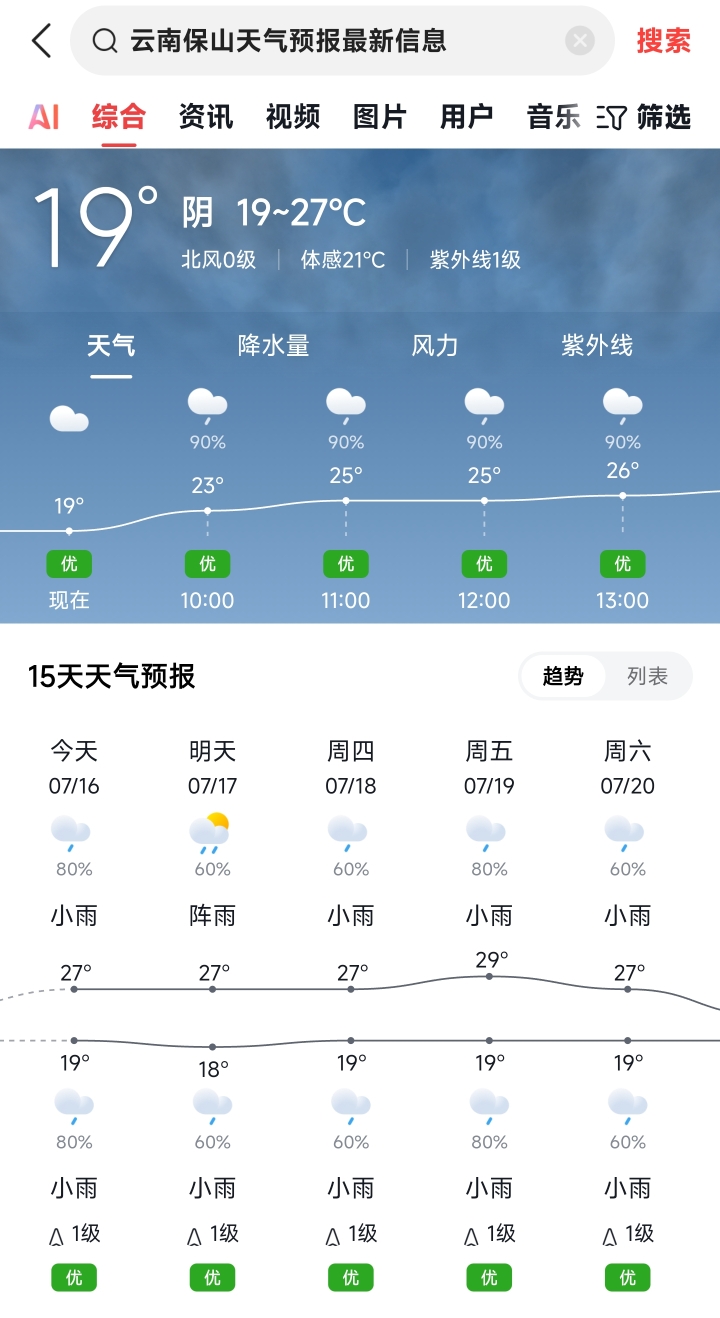 2 云南保山市19~27℃