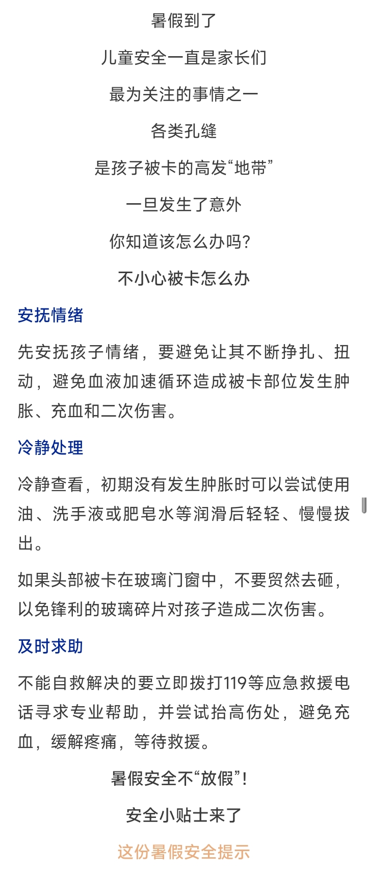 [盐都杂谈] @自贡家长们,这份儿童暑假安全贴士建议请收好