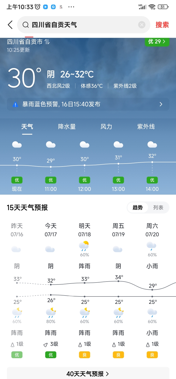 7 四川自贡26~32℃