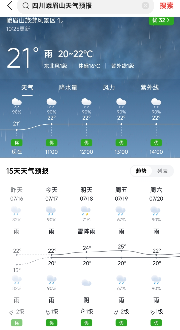 6 四川峨眉山20~22℃