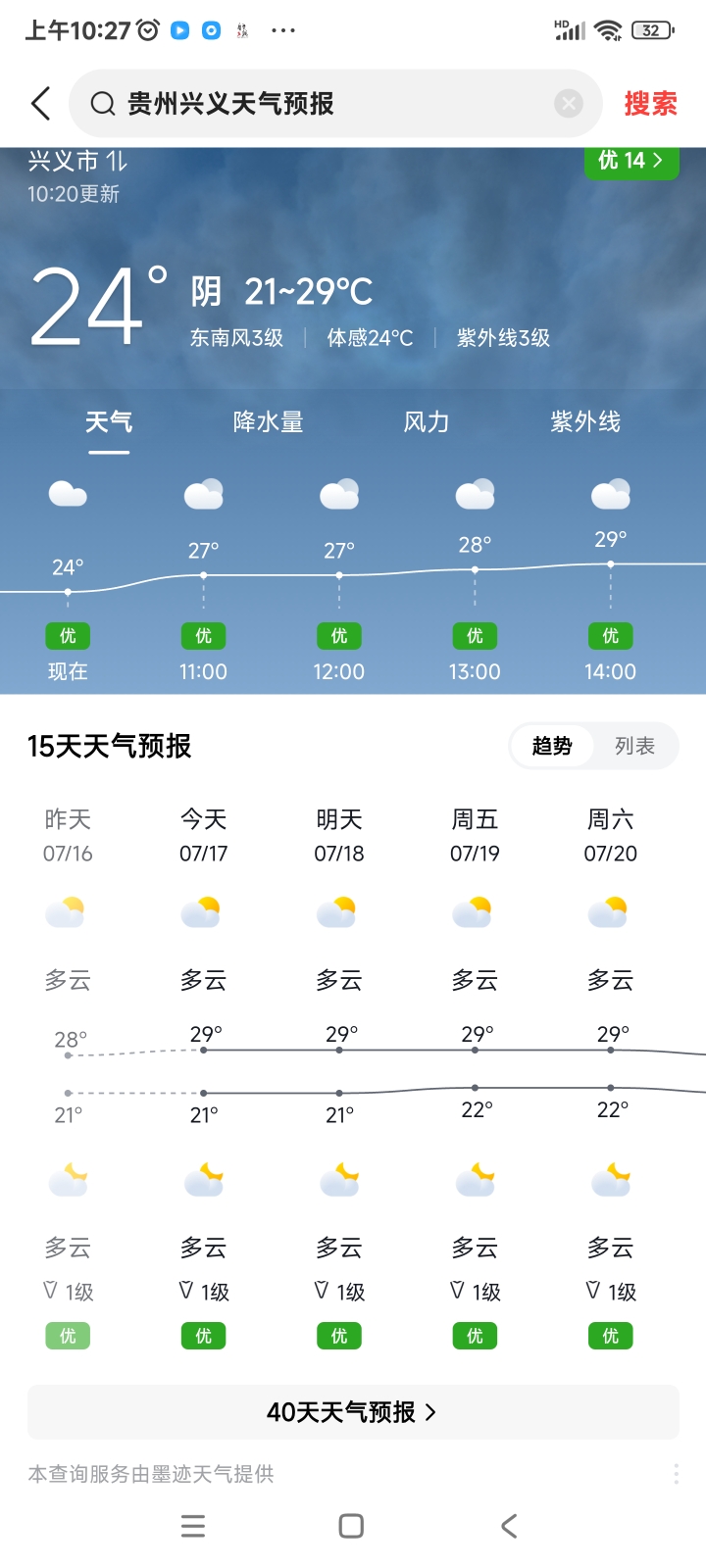 1 贵州兴义21~29℃