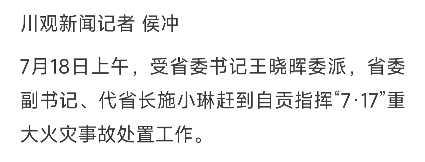 [盐都杂谈] 四川省人民政府代省长施小琳赶到自贡指挥“7·17”重大火灾事故处置工作