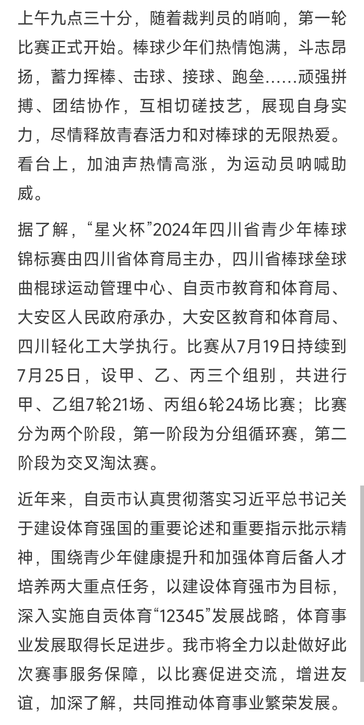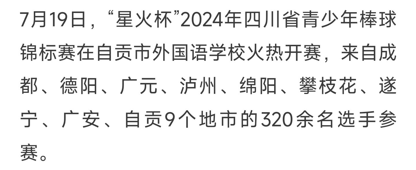 [盐都杂谈] “星火杯”2024年四川省青少年棒球锦标赛在自贡开赛