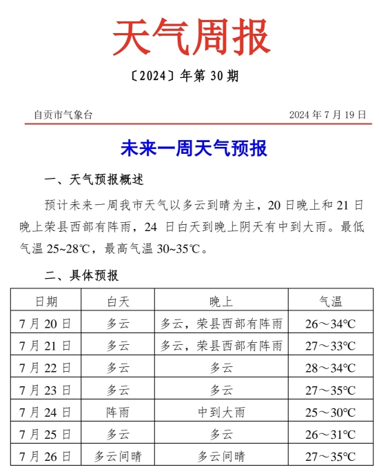 [盐都杂谈] 25~35℃!自贡市气象台发布未来一周天气预报