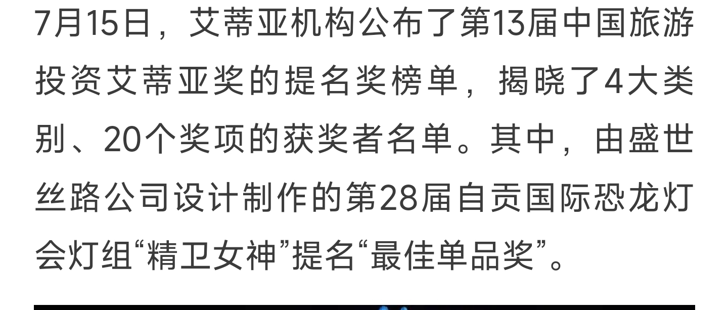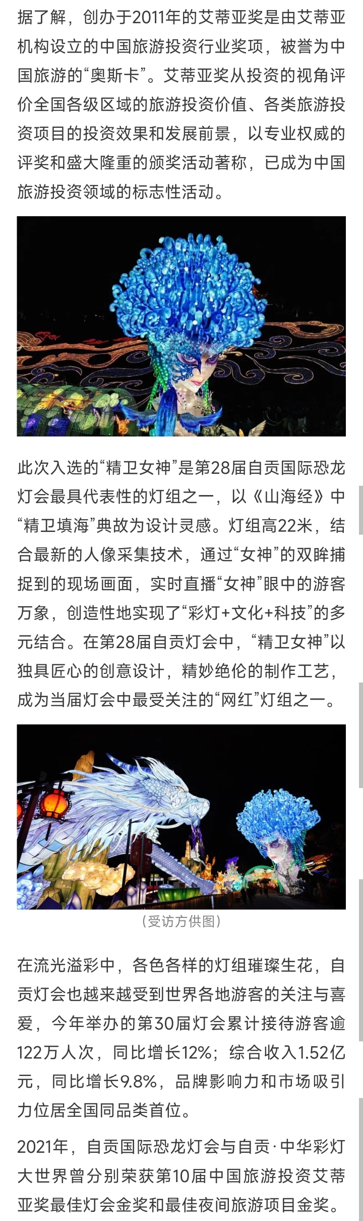 第28届自贡国际恐龙灯会灯组“精卫女神”灯组提名中国旅游“奥斯卡奖”