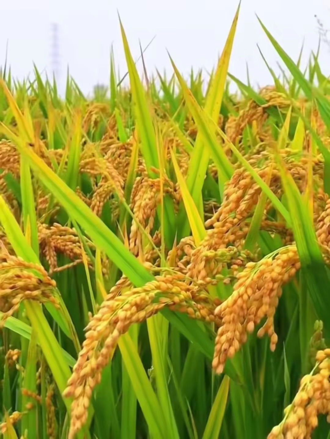 谷粒金黄闪耀,镰刀霍霍飞跃。丰收满仓喜眉梢,苦累换作大笑!