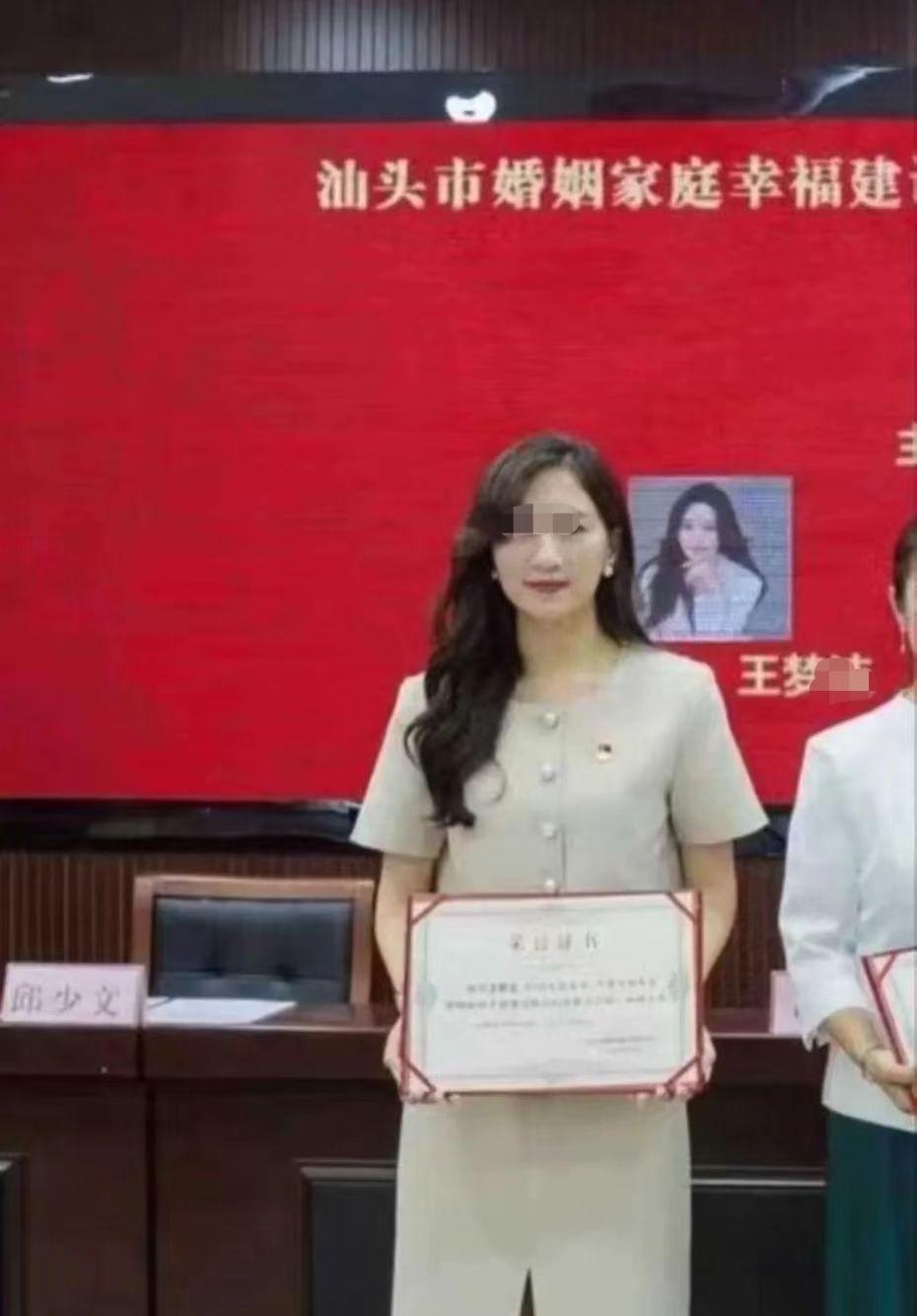 事件中的医院院长黄某曾被评为“汕头好人”,而婚内出轨的女方王某则是汕头市”婚姻家庭幸福建设协会副主席”。