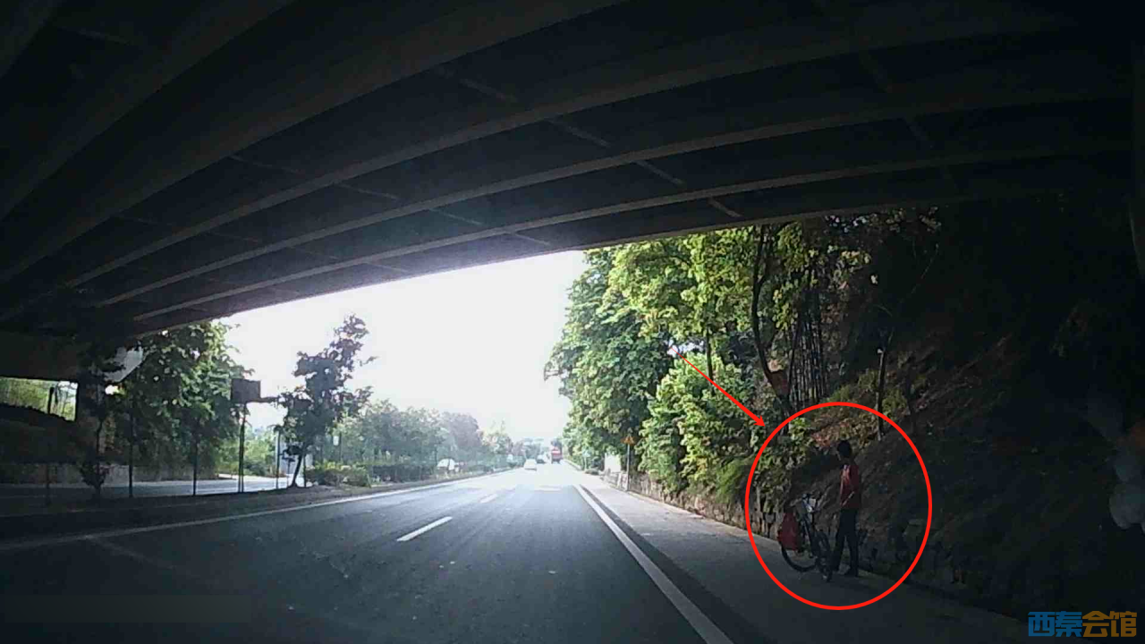该名行为人在桥墩下 停下自行车暂作歇息 胡良斌也将车停靠于行为人不远处 观察其动向并联系派出所 询问到达该位置时间