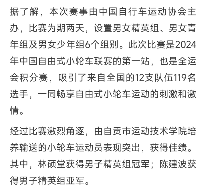 [盐都杂谈] 自贡市健儿获全国自由式小轮车赛冠、亚军