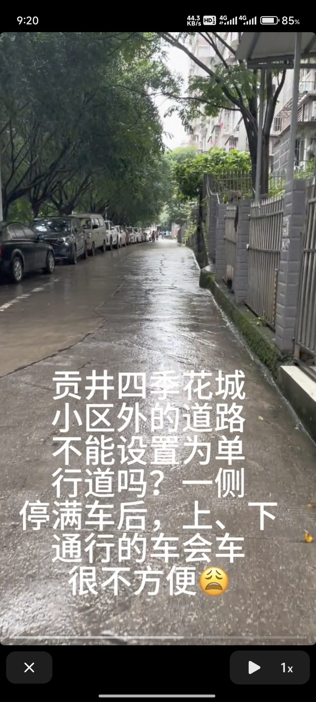 贡井区道路上下通行,道路一侧又划有停车位。四季花城地下车库又有车辆出入,不同方向来车会车很不方便,有时还发生擦挂事故。交警能不能优化设置一下改善交通情况。