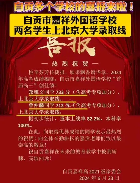 [盐都杂谈] 自贡市嘉祥外国语学校2名学子被北京大学录取
