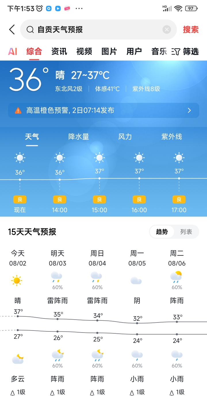5 四川自贡24~37℃
