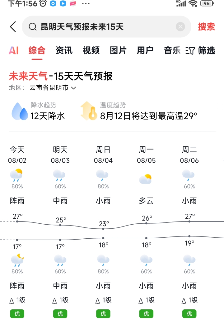 1 云南昆明17~27℃
