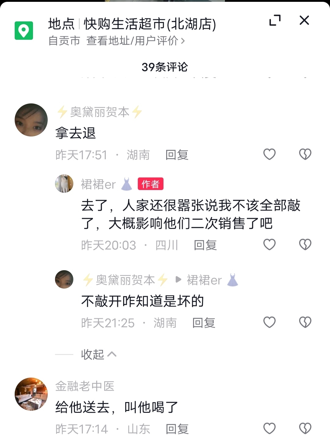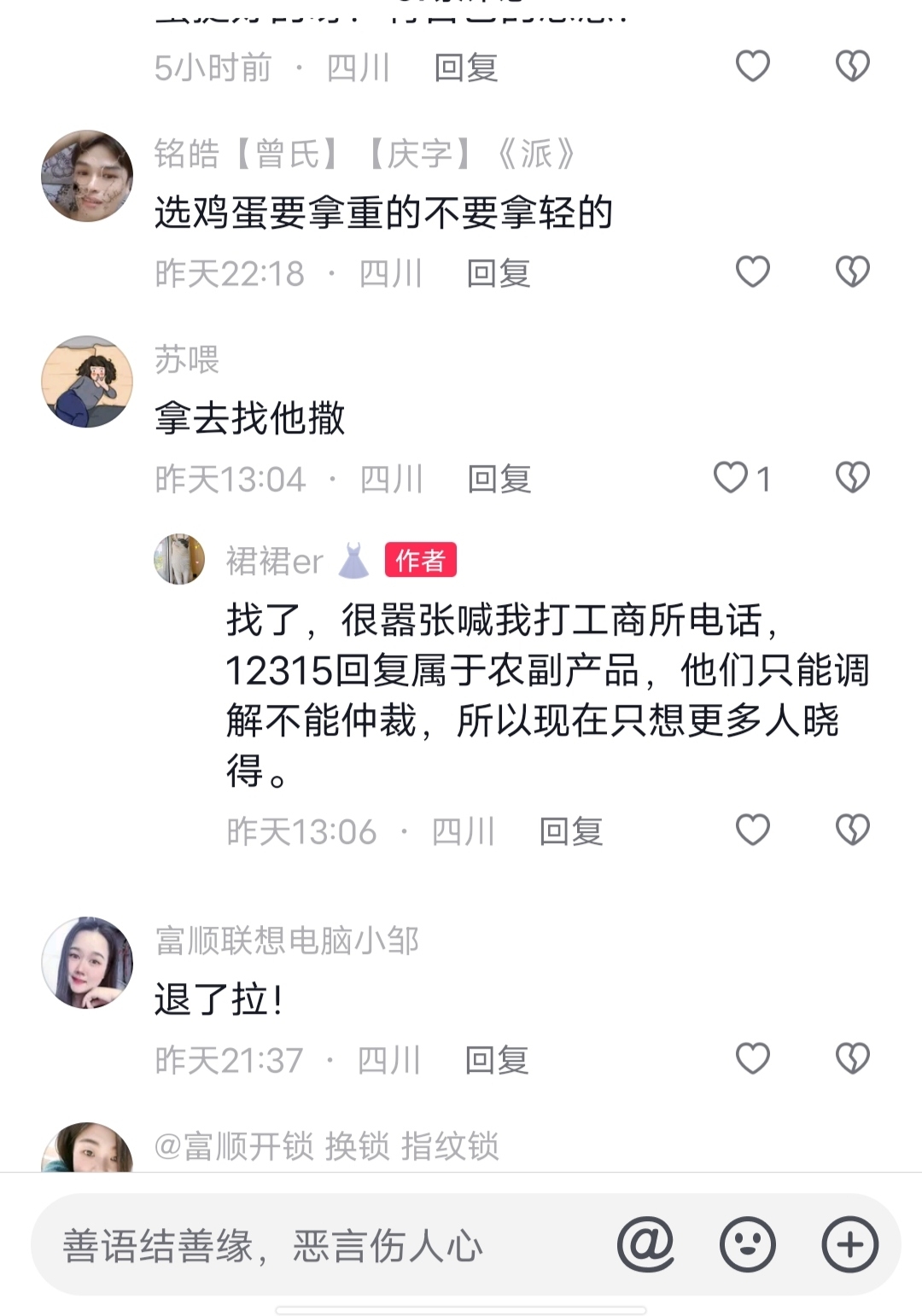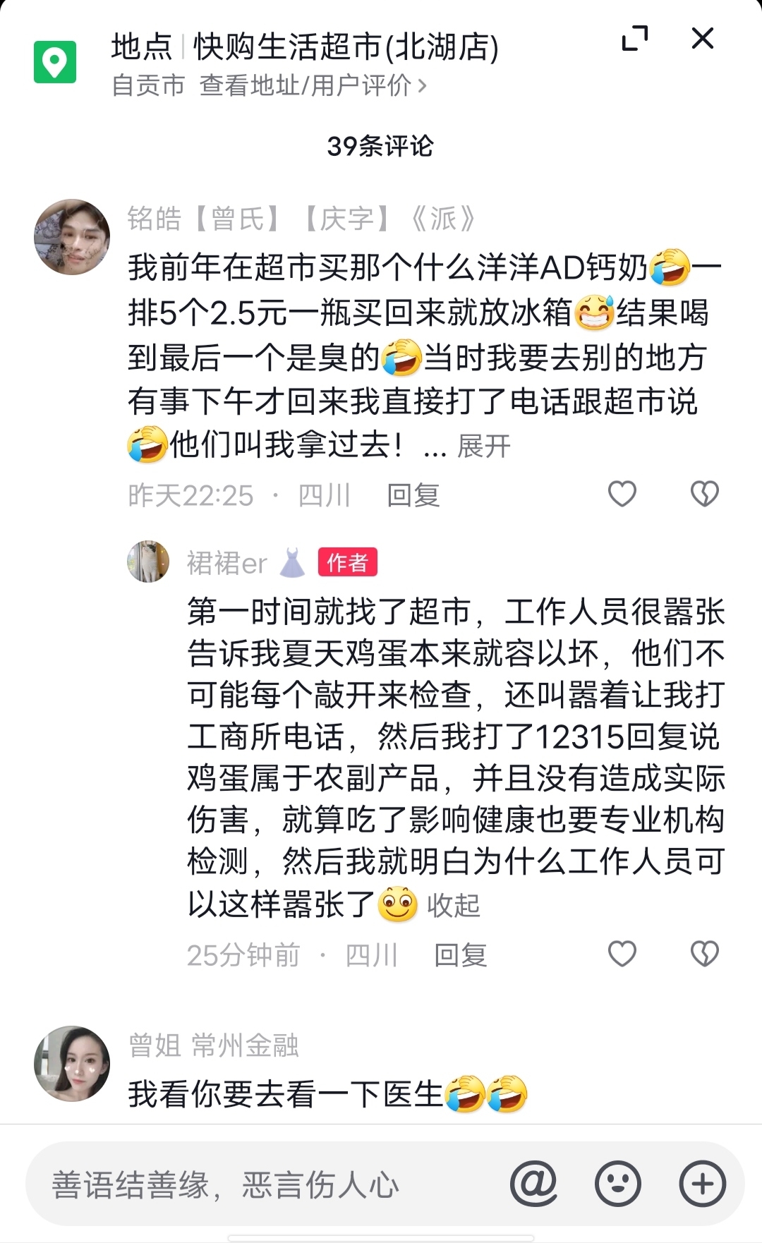 “避雷北湖一号快购超市售卖已经变质的臭鸡蛋,天气热鸡蛋坏一两个是偶然,十多个全坏就是必然,并且第一时间是质问我为什么全部敲开,我不全部敲开怎么知道全是坏的,还是说影响了你们放回去二次销售?#避雷超市 #消费者权益谁来保障 #消费者协会 #食品安全”转自抖音网友裙裙er