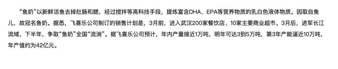 早在 2005 年,我国武汉一家公司就推出了一款鱼奶产品,并拥有完全独立的知识产权。鱼奶的制作过程是通过深加工淡水鱼获得的乳制品,旨在提供一种新的高营养饮品。