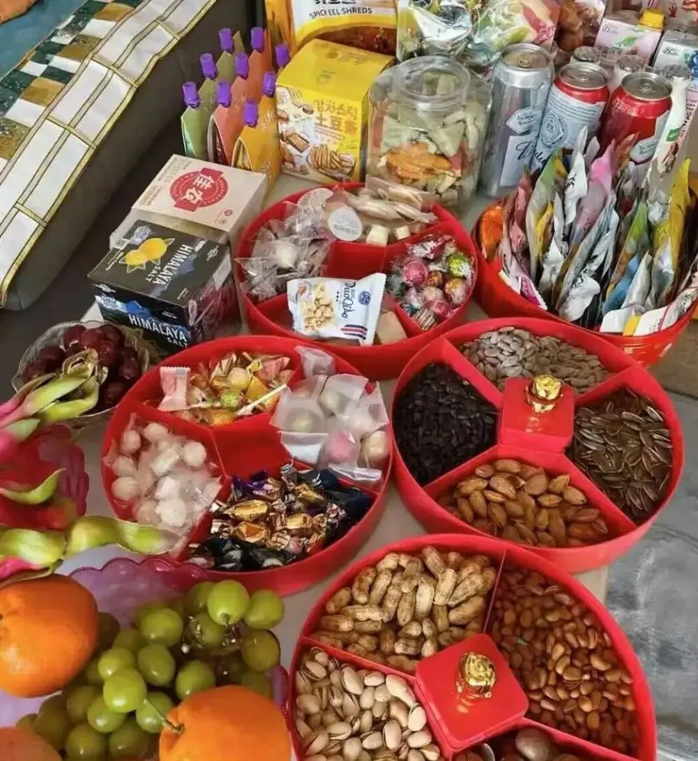 而直到饭后甜品时刻,打工人买的三只松鼠,都挤上不了过年的果盘。