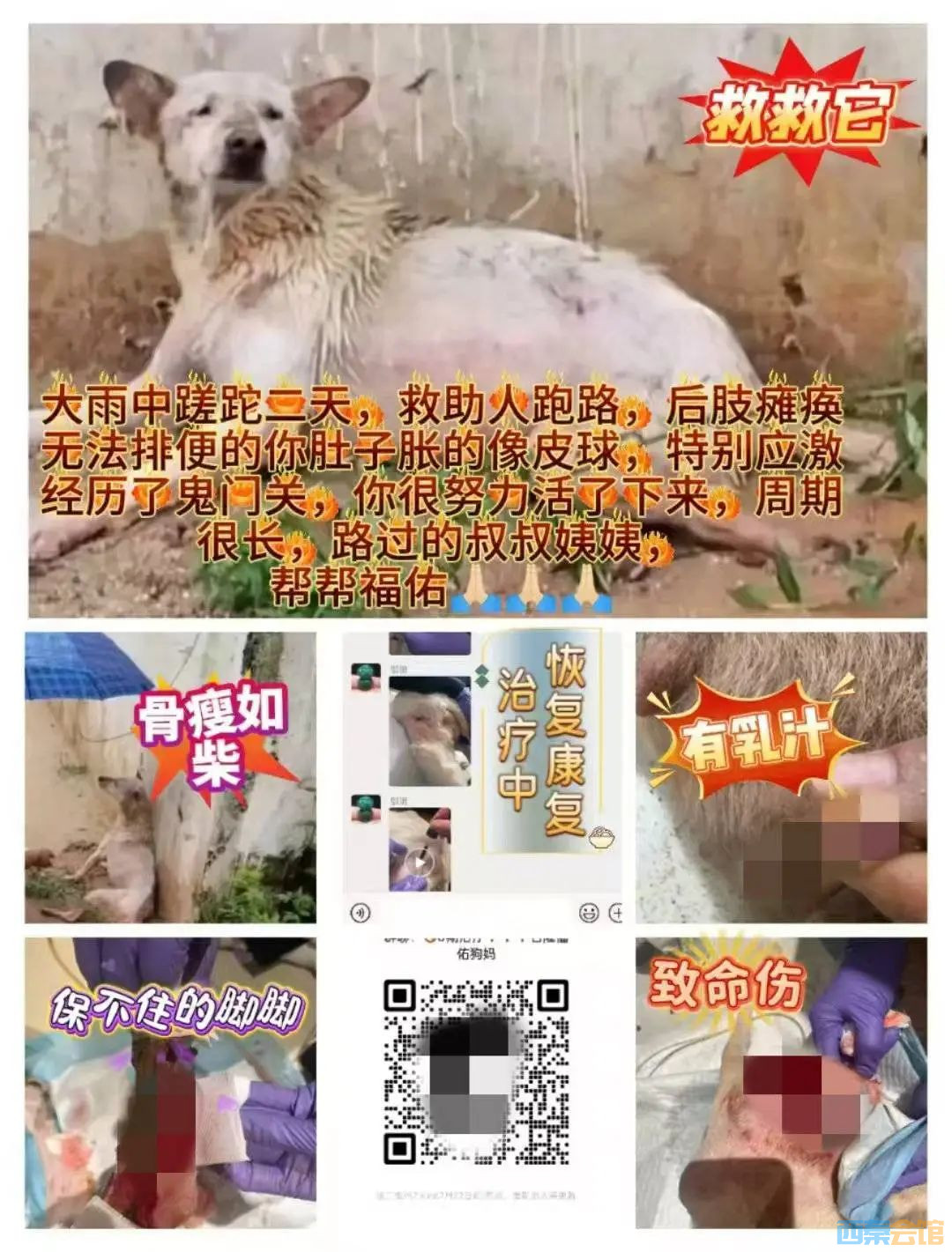 受伤流浪狗命悬一线等待救助 数百名爱心人士捐款近10万元