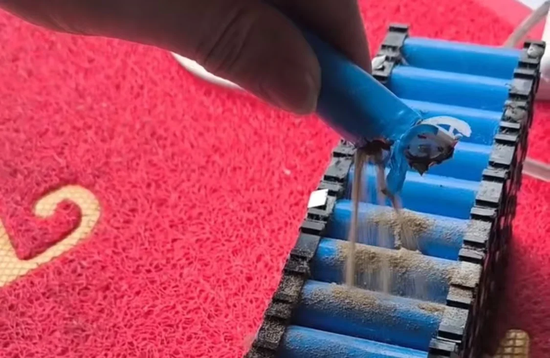 他想起,公司第一次寄来的设备和工具是坏的,联系更换后,发来的还是很廉价的工具。他带着疑问把手中的电池拆解开,发现电芯材料也是假的,从里面倒出细碎的沙子、粉末,根本不导电。