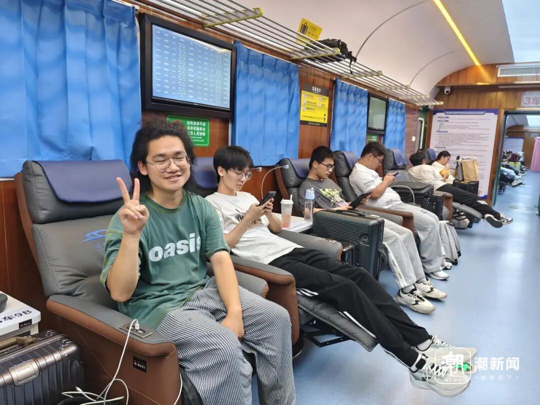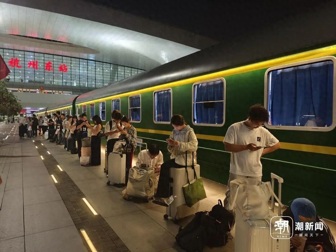 随着国庆假期的开启,杭州东站进入“人从众”模式。 从昨天(9月30日)上午开始,已有络绎不绝的旅客从这里出发,去往全国各地。当晚,东站开启通宵运营模式。10月1日、10月7日、10月8日的杭州东站将继续通宵运营模式,接驳旅客的公共交通也将同步延长运营时间及加密运营班次。 火热的还有东站东广场的旅客夜间休息室。 5天前(9月26日),这列可同时容纳126人过夜的绿皮“小火车”开始试运行,刷爆社交媒体,现在迎来了属于它的第一个长假忙碌时刻。 旅客夜间休息室,每晚10点开门迎客,一直要第二天早上8点。 昨天晚上8点,记者来到东广场上,夜间休息室门口已排起了长队。  杨云寒 摄 在此等候的,基本是学生面孔。队列中不少人拎着行李箱,扛着大包小包。 四川人小张背着双肩包,还拖着一只黑色行李箱。他今年大二,在桐庐上学,国庆打算去厦门玩,奈何票太紧俏,原定下午从桐庐出发的车票没抢到,只能来东站换乘第二天凌晨的高铁。 “要不是同学告诉我,这里有夜间休息区,我都打算睡候车大厅了。”对于这项便民服务,小张很惊喜也很期待,并给出了他的实名点赞。 河南人小马慕名而来。先前他在网上刷到东站夜间休息区的短视频,“我和发小只抢到10月1日早上7点多去福建的票,我在余杭,他在临安,赶过来都要个把小时,很不方便。”两人一合计,选择提前来车站,顺便体验这项贴心的“杭式服务”。 小马告诉记者,之前有过因为抢不到票在车站留宿的经历,“要是没这个休息区,我们得在附近找便宜的宾馆,先不说这两天能不能找到,还得花一笔钱,肯定是没现在这个休息室方便。” 没一会,门口排的队越来越长。东站管委会提前开放休息区的部分座位。 在杭读大一的小郑姑娘坐第二天早上6点的高铁回台州临海。前台完成登记后,她领到了座位卡,座位在4号车厢,这也是休息区的女性友好车厢。  杨云寒摄 她把行李箱放下座位边上,躺在座椅上,放平了靠背和脚托,“比想象中舒服。” 最让小郑惊喜的是座椅边上的小喇叭,可以提供叫醒服务,“今天终于可以睡一个安稳觉了。” 坐在小郑边上的石姑娘则为这节女性专用车厢点赞,“来之前还担心会不会男女混住,现在感觉很贴心,安全感瞬间拉满。” 被安排在3号车厢的义乌小伙小胡坐第二天早上6点的车回家,“网上看到过这个休息区,我也是体验上了……” 小胡今年放暑假的时候在杭州西站的留宿点住过。他不由做起了比较,“西站的留宿点有淋浴房,洗澡很方便,东站也不错的,这个座椅很柔软,躺着也舒服……” 在他看来,无论是西站的留宿点还是东站的夜间休息区,都是杭州这座城市温度满满的体现。  杨云寒摄 9月30日晚9点,车厢门口又排起了长队,队伍从第一节车厢的前门口一度排到第二节车厢。管委会工作人员拿着二维码到队列前,引导旅客扫码登记信息。  杨云寒 摄  杨云寒 摄 工作人员告诉记者,从前一天(9月29日)晚上开始,夜间休息区就处于基本满员的状态。 9月30日的人也不少,晚10点刚过,4节车厢已基本满员,但门口队列依旧很长。  杨云寒 摄 “我们会优先考虑需要在站内等待时间更久的旅客……”东站枢纽管委会提醒,夜间休息区座位有限,尽可能把有限资源让给实际有需要的旅客。 潮新闻 记者 杨云寒 (来源:潮新闻)