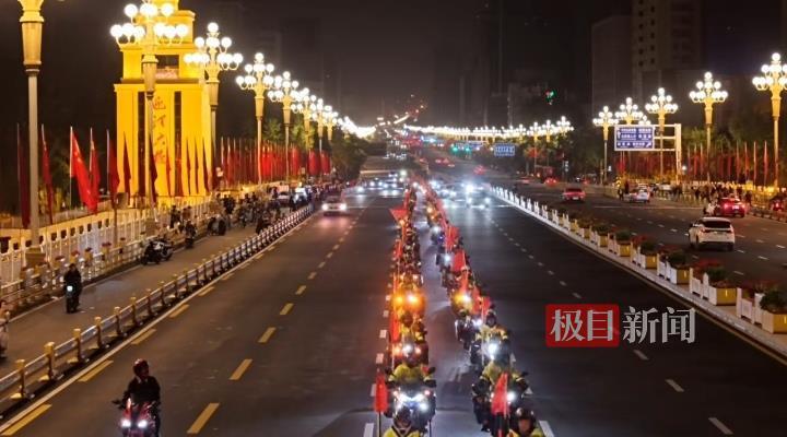 极目新闻记者 赵贝 10月1日凌晨2时许,山西太原网红打卡地迎泽大桥,76辆摩托车组成巡游车队,带着76面五星红旗,后在桥面灯光辉映下缓慢前行,出发前还特意摆出“76”造型,庆祝新中国成立76周年。  76辆摩托车组成的国庆献礼车队(受访者供图) 极目新闻记者了解到,这是当地一个名为“太原晋盟骑士团”的车友会组织的活动。1日上午,该“骑士团”成员蔡女士告诉记者,他们组织了76辆摩托车,9月30日晚11时20分,参加巡游的摩托车从全市往迎泽大桥附近集合。 出发前,76辆摩托车摆出“76”造型,每辆摩托车上都插着一面长80厘米、宽60厘米的国旗。1日凌晨2时整,车队出发开上长约1公里的迎泽大桥。76辆摩托车,76面五星红旗,在桥面橙黄色灯光的映照下,色彩更加鲜艳,在桥面劲风的吹拂下,飘扬得更加有力。  巡游车队 “76辆车,‘76’造型,76面五星红旗,就是为了献礼新中国76岁生日!”蔡女士说,太原不禁摩,选择凌晨2时许巡游,是因为夜间车辆较少,不影响交通,“只在桥面往返了一次,约两公里,用时15分钟左右。” 多位当地市民目睹了这场摩托车国旗巡游献礼,他们将拍摄的视频发布在社交平台,引起众多网友关注。网友表示,车灯与路灯相辉映,在桥面铺就流动的星河。每一次引擎轰鸣,都是对山河无恙的礼赞。红旗漫卷处,是家国同心的滚烫。  巡游车队 极目新闻记者了解到,9月29日凌晨,当地百川和飞鹰车队也组织了汽车巡游,五星红旗在太原迎泽大桥上迎风招展,车友以桥为媒、以车为笔,和全体太原市民一起,共书“华夏波澜壮阔”的答卷,共祝祖国华诞安康。 (来源:极目新闻)
