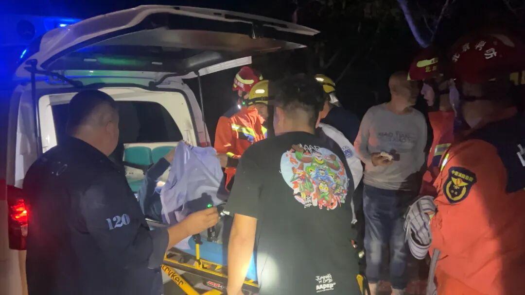 18时46分到达山下,现场指挥员根据被困者描述的位置与医护人员、当地村民初步制定登山路线和救援计划,采取与被困人员共享实时位置的方式分两组上山进行救援,在去往救援现场的途中,救援人员经电话询问,被困人员脚部骨折,由于不熟悉地形,被困山上。在登山途中,消防救援人员和被困者保持不间断联系。救援人员通过仔细询问周边环境情况,以及喊话的方式,19时12分,最终发现被困者的具体位置,经过医护人员初步处理和包扎后,随后利用担架将被困人员抬到山下,转交给救护人员去往医院进行进一步治疗。