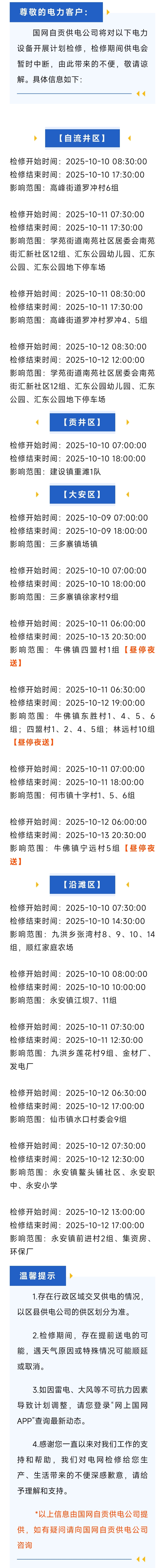 2020年9月份停电信息