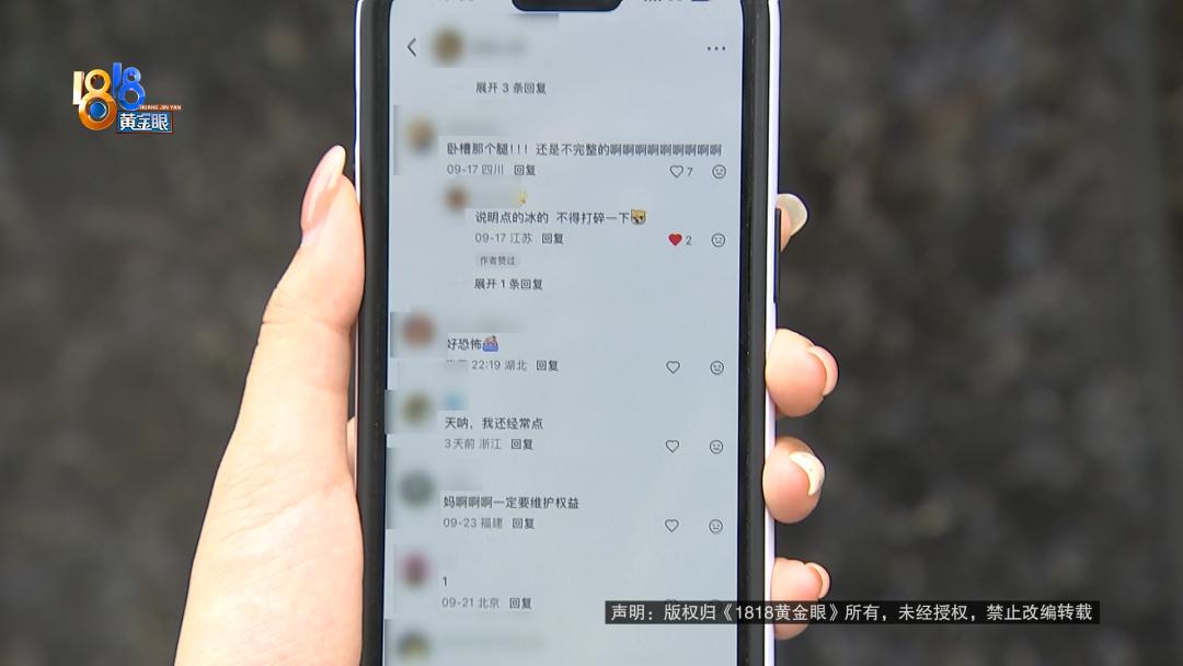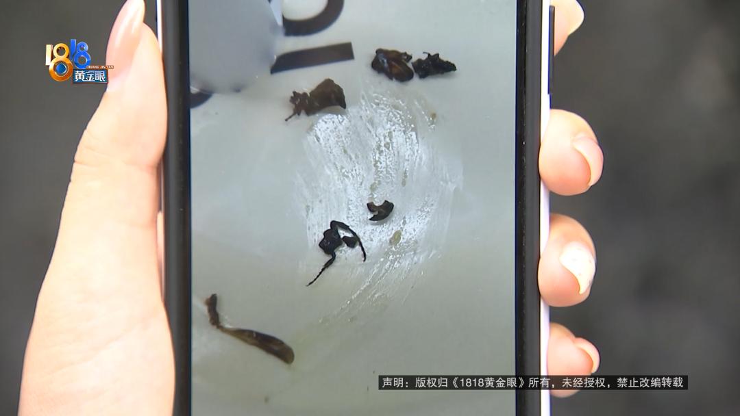 李女士反映,平时很爱喝的奶茶,这次突然喝到了不一样的东西。  KOI THE,这个奶茶品牌的中文名叫“可宜”,李女士是忠实顾客。官方小程序里成长值是1090,她说每消费一块钱积一个成长值,这还不包括她在其他平台上买的。  9月17号下午1点31分,李女士的男朋友通过外卖平台给她买了一杯可宜奶茶,实付18元。  李女士:当时他们店的订单比较多,等了一个半小时,(下午)3点钟送到我公司楼下外卖柜的。过了两三分钟我就下去拿上来了,喝了第一口就觉得很甜,给我第一直觉就是做错了,太甜了。我就想看一下杯身上有没有做错,结果发现没有平常点奶茶会有的标签。一般标签上会有你点的是什么,以及你加的料、你的糖度,还有这杯奶茶做的时间,但是都没有。  李女士提供了当时拍摄的视频,外卖袋和奶茶杯上都没有标签,订单中她的选项是中杯、少冰、不另外加糖、蔗糖、波霸,作为老顾客的她觉得甜度不对劲。  李女士:那我也不能说因为比较甜就扔掉,我就继续喝,想着等着里面冰块化掉一些、冲淡一下那个味道,不那么甜了。结果当我喝的过程中,就喝到一个口感类似钢丝球那样的、很硬比较扎嘴的东西,肯定是不会咽下去的,我就吐在手指头上,想看下是什么。吐出来之后就是黑色的几块,用手碾开就发现其中有昆虫的腿,腿上有毛,当时就比较恶心的。   李女士拍的照片中,有四五块黑色的碎片,其中一块还有两个锯齿状的物体。  她不确定是什么,把情况发在了网上引起了大家的讨论。有人说一开始以为是茶叶,直到看到了腿上的毛刺,有人说这不是蟑螂是天牛。估计采茶叶时一起带走了,生态好。    李女士说,她看到异物后联系了商家。 李女士:店长听了电话之后,言语中就是对我有一种质疑,就说你有什么证明这个虫子是里面喝出来的?然后说那这样吧,我把你这杯退了再赔你三杯。我说那我也不敢喝了,我都喝出昆虫了,我还怎么敢喝?12315是让市场监管局介入了,介入之后也就是调解,调解过程中商家就一直不承认这个东西。  李女士说,最早发现标签不对、口味太甜的时候她就向商家申请退款,被拒绝了。直到第二天,平台退款并补偿了一个红包,可宜奶茶浙江区域的负责人也跟她联系过。  李女士:一开始其实我的诉求并没有一定要求《食安法》那么严格赔偿我,但他们态度导致我现在就坚持用法律程序维护正义。他们就不同意,这个负责人说以个人名义赔偿我300元,我不接受。 KOI THE(可宜)奶茶浙江区域负责人 胡经理:门店的外卖单比较多,前面一个骑手把这一单拿错了,这个是有监控的。我们这一单找不到了,是不是应该重新做一杯?重新做的一杯就是送到顾客手上的这一杯。 李女士:他的意思是我收到的为什么没有标签、没有封口签、没有外卖单,就是因为重新做的。 KOI THE(可宜)奶茶浙江区域负责人 胡经理:对,因为我们给顾客做是比较着急的情况下。我看了监控,这杯饮料就是没加糖的,本身料就是甜的。顾客说甜,因为口感这个东西每个人都不一样。  胡经理表示,饮品没有问题,门店拒绝了退款。过了四五十分钟后,顾客反映了虫子的问题。此前的采访中李女士提到过,她当时想等冰块化掉冲淡味道,之后发现了异物。  KOI THE(可宜)奶茶浙江区域负责人 胡经理:我们肯定是先自查,第二天食药监也来我们门店调取了所有东西,食材记录、健康证、营业执照、泡制每一杯饮品的食材记录,我们内部是没有发现有进入这个异物的方式的过程。 记者:你们觉得她喝出来的是什么东西? KOI THE(可宜)奶茶浙江区域负责人 胡经理:我们没办法断定喝出来是什么,客人喝到这个,我们可以给她退款,首先不管这个东西是什么,或者是不是我们饮料里出现的,最起码顾客体验不好。  负责人表示,市场监管部门一直在中间做协调,也需要顾客提供监控视频来证明,但顾客没有提供完整证据链。 李女士:正常消费者思维,点到了就吃,拿到了就喝,不会说从开封之前360度检查、喝的过程中全程录像,我又不是自媒体。对他们来说,我的诉求就是在小红书(帖子)下面对我进行一个回应,以及我会正常走法律程序,达到我《食安法》的赔偿诉求。 KOI THE(可宜)奶茶浙江区域负责人 胡经理:道歉,我已经道过好几回歉了,都有录音的。刚刚说她在小红书这个平台诉求,不管其他公司是怎么处理的,这个方式我们接受不了。  负责人表示,还是只能以个人名义补偿300元,李女士不接受,表示会通过法律程序解决。 来源:1818黄金眼