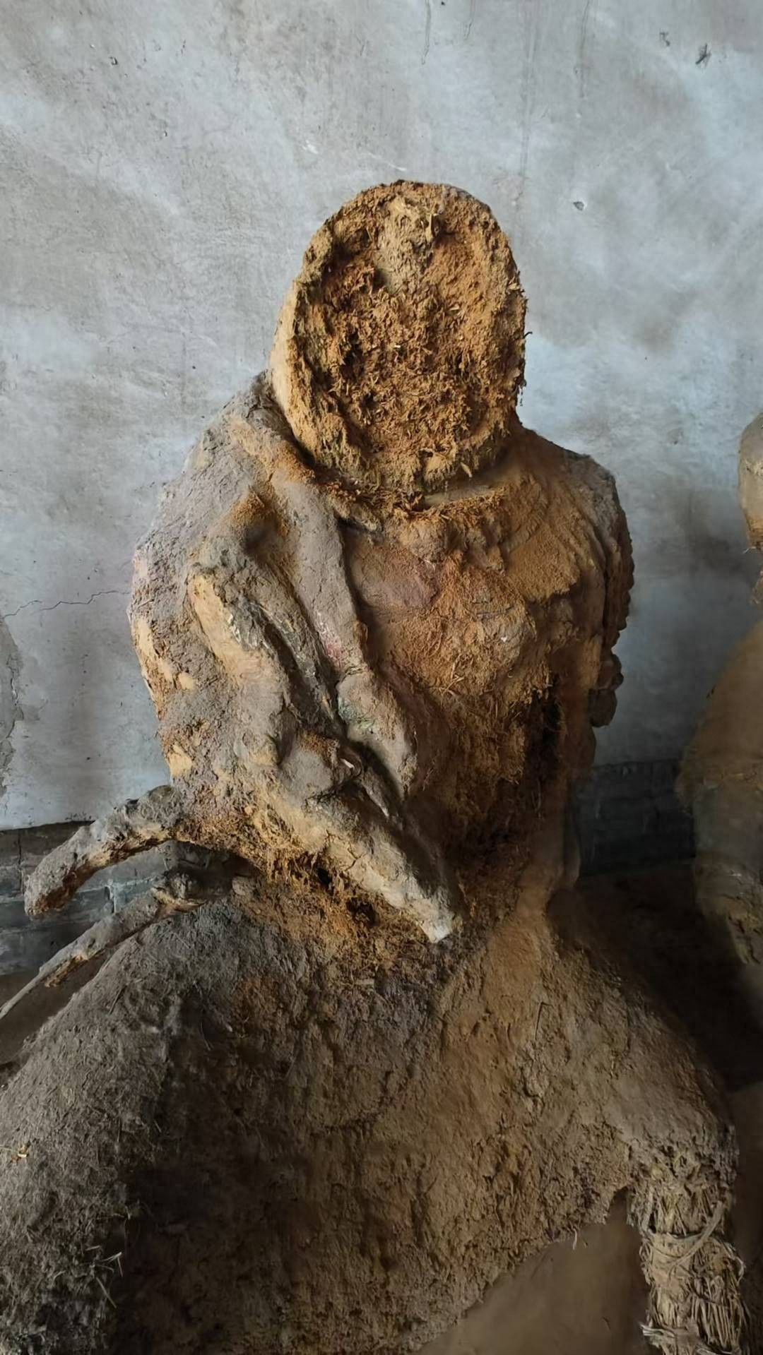 封面新闻记者 吴冰清 国庆期间,山西运城新绛县三官庙的网红神像“小土豆”,牵动了不少人的心——原本已被雨水侵蚀只剩下轮廓的神像,因为持续降雨,面部的泥土掉落。  10月4日李先生拍摄的真武元帅神像 三官庙是第六批全国重点文物保护单位,其献殿里,有两个被网友们称为“小土豆”的神像:天猷元帅和真武元帅。它们是元代的彩塑神像,由于雨水的冲刷,其华丽的外衣和庄严的面部都已被侵蚀,只剩下一个轮廓,像两个“土豆”。  此前的真武元帅神像,网友称它为“小土豆”(图据网络) “本来还有两个圆溜溜的眼珠子,现在半个脸都掉在地上,双脚中间能看到掉下来的泥。”10月4日,游客李先生来到这里特地“打卡”被称为“小土豆”的真武元帅神像,却发现这样一幕。李先生说,虽然里面正殿里有该神像的复制品,但看到残破的神像,他还是感到遗憾难过,“很多东西,经不起时间的摧残。”  三官庙正殿里复刻的真武元帅神像(图据李先生) 四川的陈女士今年国庆来到对象的老家新绛,“从3号到新绛,就一直在下雨。”在社交平台上得知“小土豆”面部损坏,10月6日下午,她特地去了趟三官庙,此时,“小土豆”的面部已搭上了一层塑料袋。“梁在滴水,‘小土豆’正好在梁下面。”担心雨水继续损坏神像的腿部,陈女士和对象一起帮助庙里的工作人员将塑料袋铺开,尽量遮挡住神像的整个身体。  陈女士和她对象一起帮着三官庙的工作人员一起搭塑料膜(图据陈女士)  10月6日,陈女士看到“小土豆”面部搭上了一层塑料膜(图据陈女士) 10月9日上午,记者致电新绛县文物保护中心。“这几天下雨漏水了吧,我也不知道具体情况,我只知道漏水了,不知道有没有塌陷。”工作人员表示,目前文保中心领导已经去现场查看。
