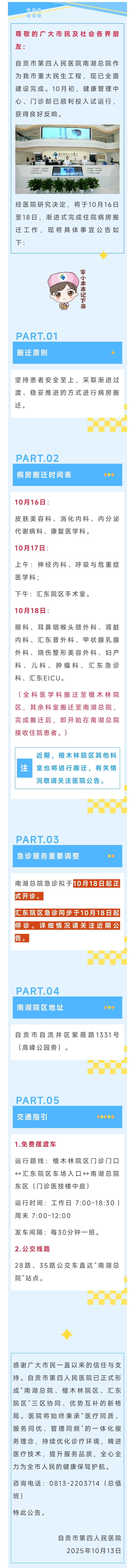 [个人] 自贡市第四人民医院南湖总医院10月18日试运行!涉及哪些科室?