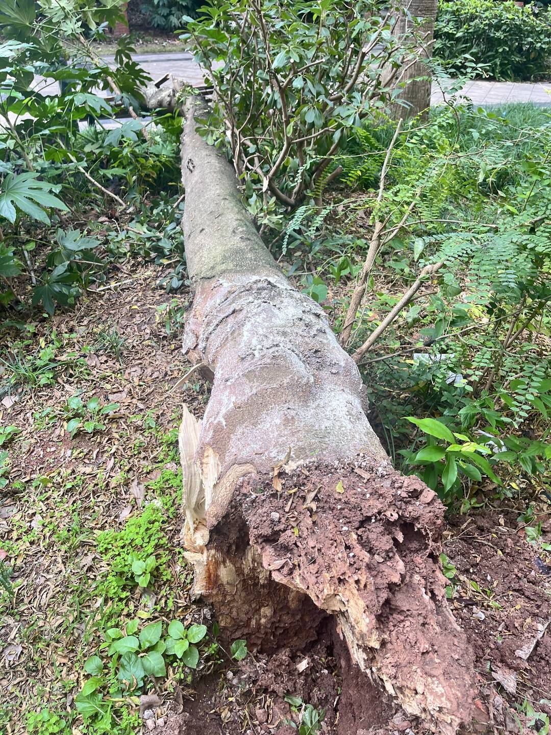 封面新闻记者 陈远扬 摄影报道 10月15日,四川资阳一小区内,一棵约9米高的皂角树突然倾倒砸中老人。随后,该名老人被紧急送医,经初步检查无生命危险,但左脚疑似骨折。物业回应称,该树外观长势良好,树木无倾斜、歪斜迹象,事发时也无大风等异常天气,倒塌毫无预兆,初步判断是白蚁咬蚀根部所致。 10月16日,封面新闻记者前往事发小区看到,有工作人员正准备用电锯对倒下的那棵皂角树进行分解处理,现场还有不少业主讨论此事。而残留的树根区域,能明显看到有蚁巢痕迹,部分树干内部已腐朽断裂。该小区物业相关负责人表示,事发后已将此事上报相关部门,正着手寻找解决白蚁的方法。  现场探访:树根被蛀,有白蚁活动痕迹 事发地位于该小区一栋二单元门外,上午11时许,封面新闻记者在现场看到,倒伏的皂角树横在绿化区域,枝条和树叶已被清理,只剩下主干部分,两名工作人员拿着电锯等工具着手分解。 “你看白蚁把下面咬穿腐朽了,上面枝条又没修剪,头重脚轻时间一长就自然倒了。”工作人员用手指着说,在树干断裂处的内部,呈现出典型的白蚁侵蚀特征:木质部被蛀成蜂窝状,混合着白蚁活动留下的泥土,腐朽程度严重。“这棵树看着粗壮,枝繁叶茂的,但根部早被白蚁‘掏空’了。”  一边围观的小区业主也有人表示,当时也没有吹风,毫无预兆就倒了。 有当时视频显示,事发时,皂角树倒向路中央,一名老人被砸倒在地,旁边的座椅也被损坏。“要不是旁边的椅子支撑起,直接倒在老人身上,后果可能更严重。”小区物业相关负责人表示,被砸中的是一名买菜归来的七旬老人。事发后,就拨打120急救电话将其送医,经初步检查无生命危险,但左脚疑似骨折,目前正在住院治疗。 记者在网上搜索发现,白蚁俗称“白蚂蚁、飞蚂蚁、涨水蛾、大水蛾”等,属最古老的群居社会性昆虫,在地球上至少生存进化了1.3亿年以上,主要以木质纤维素材料为食,是维持自然界生态平衡的重要昆虫,但因其危害房屋建筑、园林绿化、文物古建、水库堤坝、通讯电缆、布匹纸张等,加上其危害又具有“隐蔽性、广泛性、严重性和不可逆性”四大特性,成为“世界五大害虫”之一。四川地区常见的白蚁种类主要有:黑胸散白蚁、台湾乳白蚁和黑翅土白蚁,其中,黑胸散白蚁和台湾乳白蚁主要危害房屋建筑,黑翅土白蚁主要危害园林树木和水库大坝。 后续处置:物业将情况上报,如何处理白蚁待定 “我们第一时间把情况报给了住建局的相关部门,照片也发过去了,但处理起来还是有难度。”上述负责人告诉记者,一方面小区内的室外园林出现白蚁,不在相关部门的职责范围外。另一方面,物业计划通过低强度药剂的方式处理,但因担心影响周围住户,以及缺乏专业能力,也很受限,“消杀白蚁那个药都带有毒性,另外我们也想过人工挖掘白蚁窝,但担心缺乏专业能力,效果可能十分有限。”  随后,记者前往资阳市住建局了解情况。相关科室负责人表示,仅针对城市房屋建筑,具体包括新建、改建、扩建及装饰装修房屋的室内白蚁;而小区内部建成后的白蚁问题,不在处理范围内。更关键的是,有效灭杀白蚁的药剂含有毒性,用药前就需搬空室内部分物品,用药后还需密闭房屋5-7天。“我们也给物业提出了建议,这个还是要找专业公司来处理。” 而针对小区室外园林的白蚁问题,四川美净佳有害生物防治有限公司负责人雷三国给出了专业建议。他说,常见的散白蚁可通过“药剂灭杀+引诱盒监测”的方式处理,让白蚁携带针对性药剂回巢,实现群体灭杀,同时辅以引诱盒监测蚁情。 不过,雷三国也强调,灭杀白蚁的药剂带有一定毒性,需专业人员操作。而如果对室外白蚁不处理,在进入分飞期则有可能进入室内,咬坏木质家具和物品。