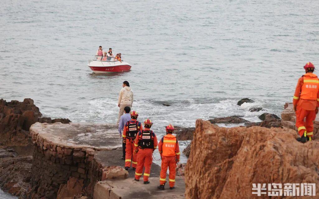 10月16日下午4点青岛第三海水浴场西侧礁石区一场惊心动魄的生死救援在此展开