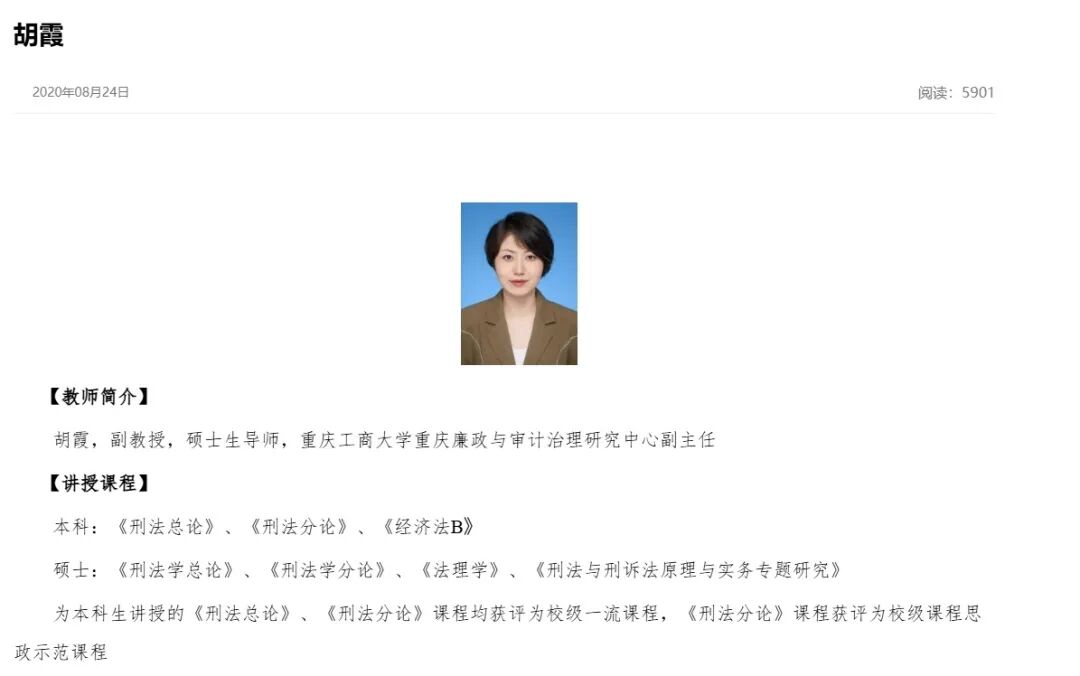 近日,重庆工商大学一位女学生在微博账号“工商秘密”投稿,称法学院的胡老师“刻薄、媚男”,该事件引发关注。  学生投稿内容 据该课程的群聊消息显示,胡老师在群聊中表示,请这位投稿的学生拿出证据来证明,如无法证明投稿中的信息,或涉嫌侵犯名誉权,老师称将会起诉。  聊天记录 据聊天记录显示,事件起因系胡老师在课堂上提问这名女学生,女学生回答不上来问题,被老师批评。课后老师把学生留下沟通。群内聊天内容显示,胡老师说在沟通过程中,学生自称“老子”。 胡姓老师发现李某在网上发布“刻薄媚男”相关言论后,在群内要求李某拿出证据,否则起诉其名誉侵权,并表示“网络不是法外之地”。随后,涉事学生李某道歉。 在向胡老师表达歉意的同时,该学生也进行解释,说自己“在气头上做了这些事”,称被点名回答问题时,确实没准备好。李某认为,“老师上周抽背男生时很温柔,并且他们三个人一起起来回答一个问题,然后老师您还很客气地让他们坐下来,可是我坐第一排并不是主观走神,我是真的有adhd(注意缺陷多动障碍)。” 聊天记录显示,李某还说“我说您‘刻薄’只是因为被骂二十分钟觉得很难受,下课我本来想好好跟您说,但是您问话的时候太强势了”。  随后胡老师表示“你的道歉不接受,如果诋毁用对不起就可以化解,那对受害者造成的伤害怎么弥补”。同时,胡老师也解释“我问了你最简单的问题,是之前上课已经问过其他同学很多的问题,我担心你回答不出来会情绪不好,专门问最简单的问题,但是你最简单的问题都回答不出来”。 胡老师表示“多说无益,等着应诉吧”,李某再次道歉,“我会为自己的行为付出代价承担责任的,实在是抱歉老师”。 胡老师在聊天中表示,要把这个事情作为案例讲给本科生和研究生,涉及法学专业知识中的“侵权”和“犯罪”,二者的界限何在,并表示还有学生担心所学的知识无法落地,就用这种方式落地。  聊天记录 潇湘晨报记者搜索微博账号“工商秘密”看到,该账号关联了重庆工商大学,粉丝有29.2万人。  道歉帖文 10月30日16时4分,该账号发布了一则道歉帖文。帖文中涉事学生李某称,因《经济法》课堂上回答问题错误,被胡老师教育后一时冲动、失去理智、情绪不稳定,10月28日晚上向“工商秘密”和个人朋友圈发表了对胡老师的不当言论,并夸大相关情况,“在这里向胡老师真诚道歉,作为一名大一新生年少轻狂,希望各位能给我改过自新的机会。”  来源:重庆工商大学法学与社会学学院官网 据重庆工商大学法学与社会学学院官网信息显示:胡霞,副教授,硕士生导师,重庆工商大学重庆廉政与审计治理研究中心副主任。 10月31日,潇湘晨报记者致电重庆工商大学办公室,办公室值班人员告诉记者,相关信息已经汇报,后续情况暂不清楚。“目前学校的领导,以及舆情中心这一块都已经知道这个事了。”学校宣传部的值班人员告诉记者,相关问题还在处理。 记者就此事件咨询了知名律师河南泽槿律师事务所主任付建,付建认为:发帖女生的行为可能构成对老师名誉权的侵犯。根据《关于依法惩治网络暴力违法犯罪的指导意见》,在信息网络上制造、散布谣言,贬损他人人格、损害他人名誉,情节严重的,构成诽谤罪;采取肆意谩骂、恶意诋毁等方式,公然侮辱他人,情节严重的,构成侮辱罪。 付建表示,法学教授的取证和维权方法是合理且合法的。教授及时联系平台索要投稿人IP和注册信息,保全所有聊天记录,这些措施有助于固定证据,为后续可能的诉讼证据支持。 潇湘晨报记者 于韬