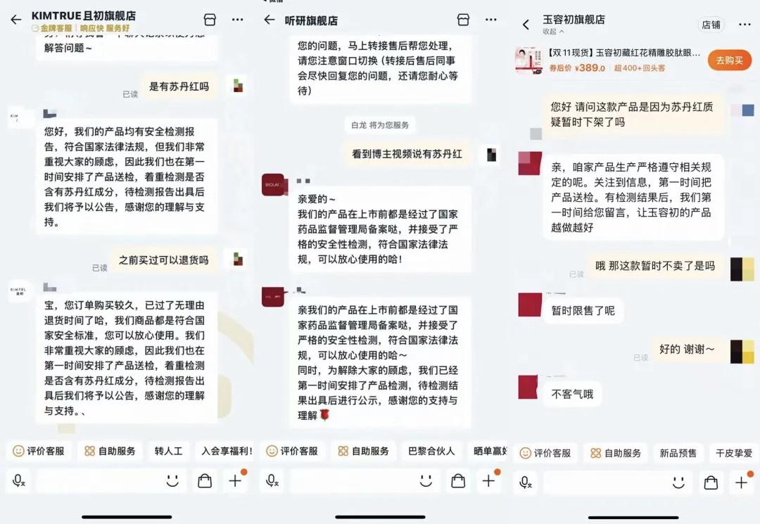 封面新闻记者 邹阿江 杨澜 近日,自媒体“老爸评测”发布视频称,在多个护肤品中检测出禁用成分“苏丹红Ⅳ”。虽然视频中对品牌名称作了模糊处理,但网友们仍迅速锁定了一批涉事产品,涉及科颜氏、花西子、Farmacy、且初等多个国内外品牌。  博主测评截图 据了解,“苏丹红”是一种化学染色剂,由于其具有致癌性,对人体健康存在明确风险,从而引发消费者不满。 随着事件持续发酵,更多疑问待解:护肤品中为何会出现苏丹红?它到底会带来怎样的健康影响。11月3日记者进行采访,一探究竟。 网络博主曝光多个品牌含苏丹红 部分品牌紧急下架涉事产品 最初,“老爸测评”在视频中称“在多款大牌护肤品中,检出禁用20年的成分苏丹红”。通过排查溯源,其团队找到了高度疑似的原料组,后辗转拿到该原料送检发现,该原料商所提供的红色复合植物原料组包含鳢肠提取物、印度楝叶提取物和辣木籽油等成分,苏丹红含量高达1170ppm(即每千克原料中含有1.17克)。  为进一步评估风险范围,“老爸评测”对市面上多款采用同款原料组的化妆品进行公证买样检测。结果显示,所有样品均含有苏丹红Ⅳ,含量在435-1982ug/kg之间。 随着事件影响持续扩大,网络舆论开始将目光投向更多品牌,一份据称涉及“苏丹红”成分的品牌名单在社交媒体上流传。受波及的品牌可能包括科颜氏、花西子、farmacy、且初、听研、chillmore且悠等多个国内外品牌。 此后,部分涉事品牌以及后续被卷入的品牌做出了回应。如“花西子”官方客服回复,已对相关原料供应企业开展严格审查,在此期间,为保障消费者权益,相关产品暂停销售。 11月3日,记者联系到且初、听研和玉容初等品牌。玉容初相关工作人员回应称,已对三款相关产品作下架处理,并第一时间安排送检;且初官方旗舰店客服也明确表示,已安排产品送检,重点检测是否含有苏丹红,待报告出具后将及时公示。听研客服同样回应称,为消除消费者顾虑,已安排产品检测,结果后续将对外公布。 值得注意的是,在事件发酵数日后,此前陷入争议的花西子“桃娇鲜颜精华底霜”已从品牌官方旗舰店下架。目前,在科颜氏的天猫及抖音旗舰店内,其“姜叶秋葵睡眠面膜”已无法搜索到;同款产品中,听研的“琉光恒采胶原次抛精华液”也在该品牌的天猫与抖音店铺中下架。 苏丹红为何出现在护肤品中? 可制造“即刻生效”的假象、掩盖原料变质 有美妆行业自媒体报道,据不完全统计,目前累计有800余款产品被爆添加了涉事的原料组,覆盖护肤、彩妆、卸妆各个品类,牵涉品牌数量多达400余个。 记者了解到,苏丹红是一种人工合成的工业染料,常用于溶剂、机油、蜡和鞋油等工业产品的增色。由于其具有致癌性,对人体健康存在明确风险。我国现行的 《化妆品安全技术规范》明确规定将苏丹红Ⅰ至Ⅳ号列为化妆品中的禁用组分 。 那么,为何苏丹红屡禁不止出现在护肤品中?“老爸评测”在视频中指出,原料商添加苏丹红是因天然植物色素存在稳定性差、易褪色、成本高等问题,“所以很可能会偷偷往里面加人工色素”,并表示“不知道有多少品牌方被蒙在鼓里”。 作为具有致癌性的化学染色剂,“苏丹红”从2005年肯德基调料事件开始,这个本该绝迹的工业染料,像打不死的“小强”,先后出现在鸭蛋、饲料里,如今又悄悄钻进女士们的护肤品。 业内人士:如果官方最终确认 相关产品大概率会启动召回程序 基于此情况,不少购买了涉事产品的消费者决定联系品牌方办理退货,过程却屡屡受阻。一位购买了科颜氏涉事面膜的消费者李女士就在社交平台表示,她购买的产品已经超过了7天无理由,看到新闻后她仍打算退货,但得到的回应始终是“所有产品均通过国家检测并符合标准”。对此,李女士感到失望,“商家并没有直面问题,消除消费者的担忧。”  品牌客服回应 针对此事,记者于11月3日采访了相关行业内部人士。该业内人士透露,在化妆品行业,品牌方通常依赖于原料供应商提供的合规性证明,自身一般不会对采购的原料进行二次检测。而“苏丹红”这一成分,并不在常规的送检目录之内,因此品牌方难以从供应商提供的标准检测报告中察觉到此项潜在风险。 一位资深化妆品配方师也从技术层面进行了分析。他指出,复合原料组本身就是一个潜藏风险的“灰色地带”,其中违禁添加的情况并非个例。他进一步说明,如果官方最终确认产品中检出了苏丹红,相关产品大概率会启动召回程序。 不过,他也呼吁消费者不必过度恐慌,从科学角度看,苏丹红通过皮肤接触直接导致癌症的可能性较低,但其确实仍存在致敏等安全隐患,需予以关注。